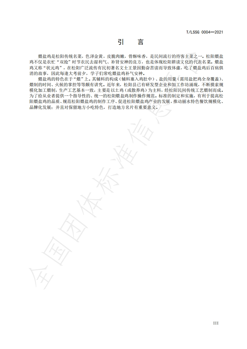 T_中华人民共和国粮食行业标准LSSGB0004-2021“丽水味道”处州特色小吃松阳煨盐鸡制作规范348072@abc19天前发布关注私信0.44MB10页024T_中华人民共和国粮食行业标准LSSGB0004-2021“丽水味道”处州特色小吃松阳煨盐鸡制作规范此内容为付费资源,请付费后查看¥17¥19黄金会员免费钻石会员免费立即购买您当前未登录!建议登陆后购买,可保存购买订单付费资源 第1页 / 共10页 第2页 / 共10页 第3页 / 共10页 第4页 / 共10页 第5页 / 共10页 试读已结束,还剩5页,您可下载完整版后进行离线阅读 THE END农学类标准规范餐饮美食 喜欢就支持一下吧收藏