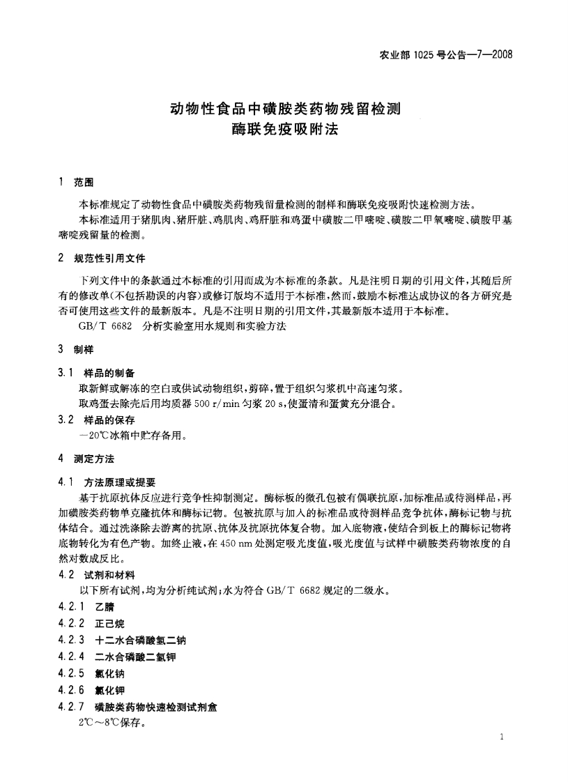 农业部1025号公告-7-2008动物性食品中磺胺类药物残留检测酶联免疫吸附法348072@abc1个月前发布关注私信0.13MB6页028农业部1025号公告-7-2008动物性食品中磺胺类药物残留检测酶联免疫吸附法此内容为付费资源,请付费后查看¥17¥19黄金会员免费钻石会员免费立即购买您当前未登录!建议登陆后购买,可保存购买订单付费资源 第1页 / 共6页 第2页 / 共6页 第3页 / 共6页 第4页 / 共6页 第5页 / 共6页 试读已结束,还剩1页,您可下载完整版后进行离线阅读 THE END播放器标准规范餐饮美食 喜欢就支持一下吧收藏