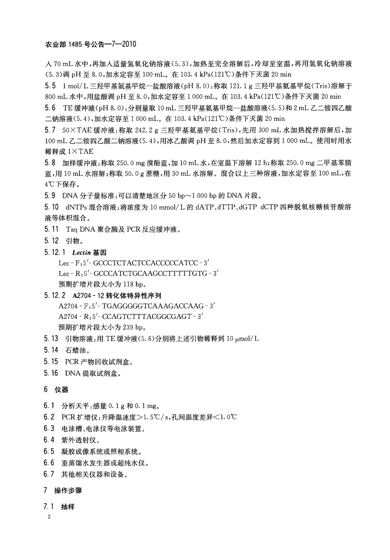 农业部1485号公告-7-2010转基因植物及其产品成分检测耐除草剂大豆A2704-12及其衍生品种定性PCR标准方法348072@abc1个月前发布关注私信0.25MB8页027农业部1485号公告-7-2010转基因植物及其产品成分检测耐除草剂大豆A2704-12及其衍生品种定性PCR标准方法此内容为付费资源,请付费后查看¥17¥19黄金会员免费钻石会员免费立即购买您当前未登录!建议登陆后购买,可保存购买订单付费资源 第1页 / 共8页 第2页 / 共8页 第3页 / 共8页 第4页 / 共8页 第5页 / 共8页 试读已结束,还剩3页,您可下载完整版后进行离线阅读 THE END播放器标准规范餐饮美食 喜欢就支持一下吧收藏