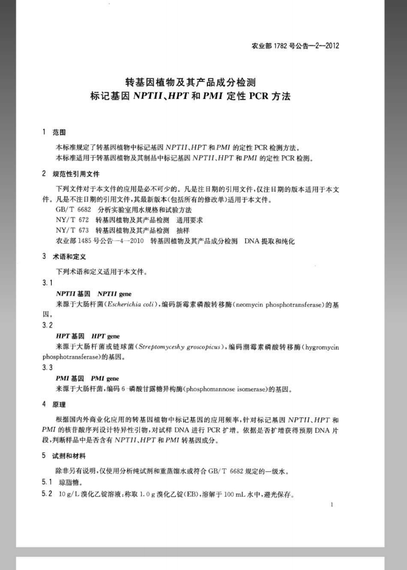 农业部1782号公告-2-2012转基因植物及其产品成分检测标记基因NPTII、HPT和PMI定性PCR标准方法348072@abc1个月前发布关注私信1.14MB12页020农业部1782号公告-2-2012转基因植物及其产品成分检测标记基因NPTII、HPT和PMI定性PCR标准方法此内容为付费资源,请付费后查看¥17¥19黄金会员免费钻石会员免费立即购买您当前未登录!建议登陆后购买,可保存购买订单付费资源 第1页 / 共12页 第2页 / 共12页 第3页 / 共12页 第4页 / 共12页 第5页 / 共12页 试读已结束,还剩7页,您可下载完整版后进行离线阅读 THE END播放器标准规范餐饮美食 喜欢就支持一下吧收藏