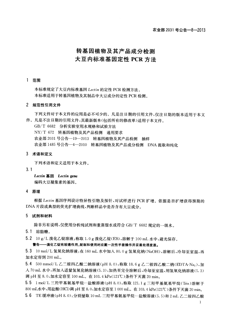 农业部2031号公告-8-2013转基因植物及其产品成分检测大豆内标准基因定性PCR标准方法348072@abc1个月前发布关注私信0.29MB8页036农业部2031号公告-8-2013转基因植物及其产品成分检测大豆内标准基因定性PCR标准方法此内容为付费资源,请付费后查看¥17¥19黄金会员免费钻石会员免费立即购买您当前未登录!建议登陆后购买,可保存购买订单付费资源 第1页 / 共8页 第2页 / 共8页 第3页 / 共8页 第4页 / 共8页 第5页 / 共8页 试读已结束,还剩3页,您可下载完整版后进行离线阅读 THE END播放器标准规范餐饮美食 喜欢就支持一下吧收藏