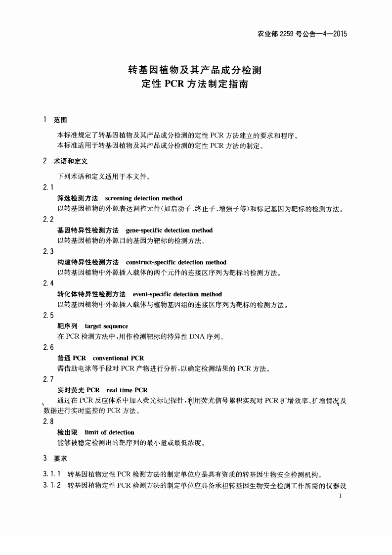 农业部2259号公告-4-2015转基因植物及其产品成分检测定性PCR标准方法制定指南348072@abc1个月前发布关注私信0.49MB5页026农业部2259号公告-4-2015转基因植物及其产品成分检测定性PCR标准方法制定指南此内容为付费资源,请付费后查看¥17¥19黄金会员免费钻石会员免费立即购买您当前未登录!建议登陆后购买,可保存购买订单付费资源 第1页 / 共5页 第2页 / 共5页 第3页 / 共5页 第4页 / 共5页 第5页 / 共5页 已完成全部阅读,共5页 THE END播放器标准规范餐饮美食 喜欢就支持一下吧收藏