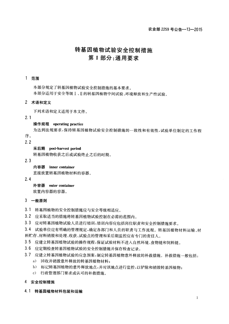 农业部2259号公告-13-2015转基因植物试验安全控制措施第1部分:通用标准要求348072@abc1个月前发布关注私信0.81MB6页048农业部2259号公告-13-2015转基因植物试验安全控制措施第1部分:通用标准要求此内容为付费资源,请付费后查看¥17¥19黄金会员免费钻石会员免费立即购买您当前未登录!建议登陆后购买,可保存购买订单付费资源 第1页 / 共6页 第2页 / 共6页 第3页 / 共6页 第4页 / 共6页 第5页 / 共6页 试读已结束,还剩1页,您可下载完整版后进行离线阅读 THE END播放器标准规范餐饮美食 喜欢就支持一下吧收藏