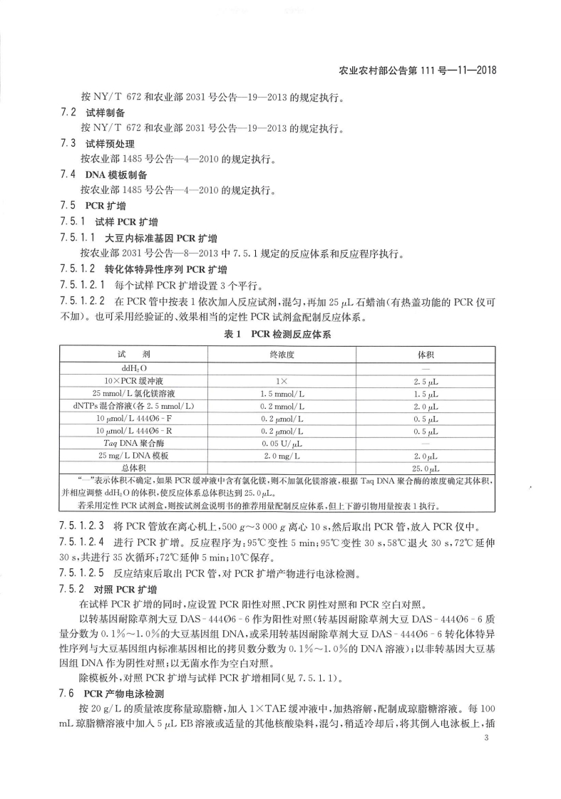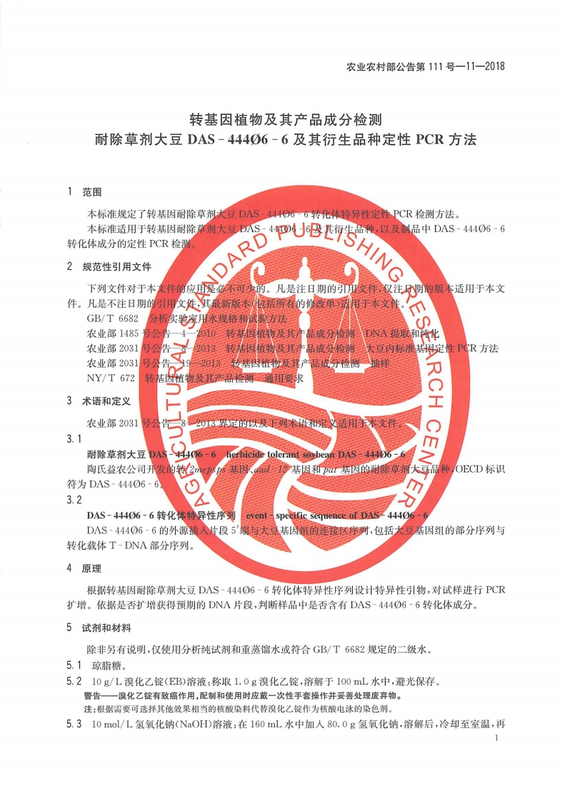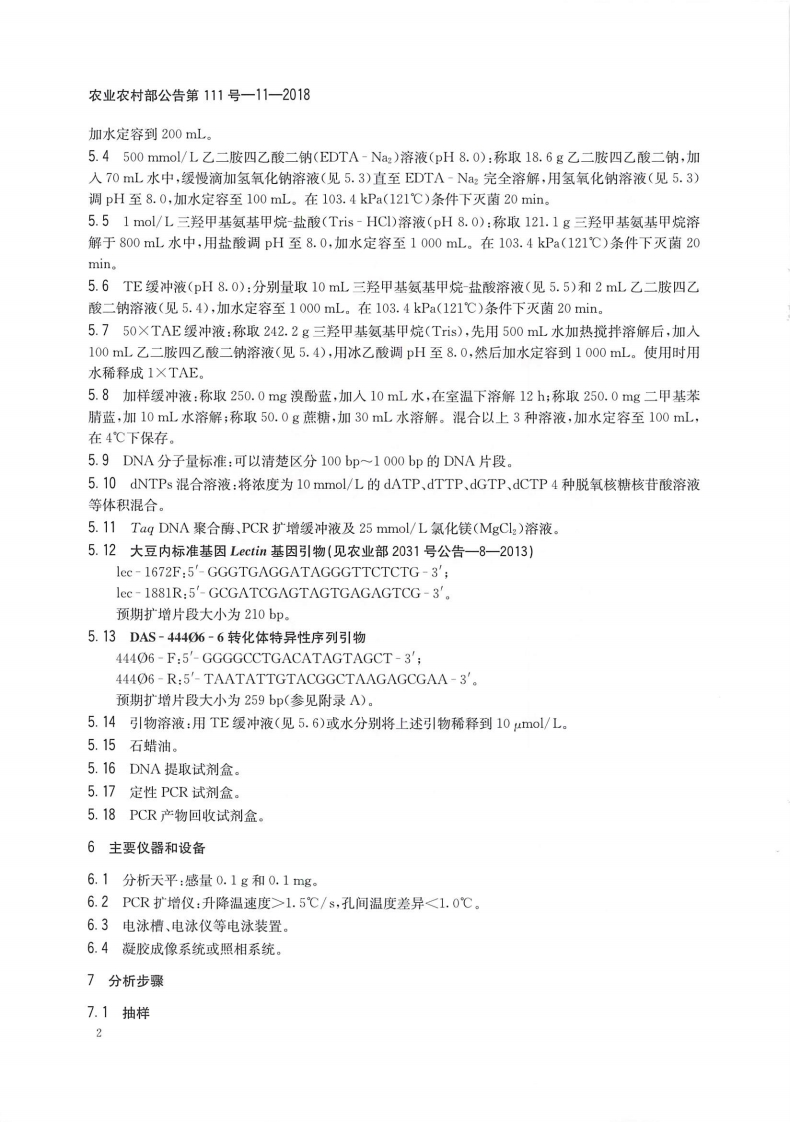 农业农村部公告第111号-11-2018转基因植物及其产品成分检测耐除草剂大豆DAS-444Φ6-6及其衍生品种定性PCR标准方法348072@abc1个月前发布关注私信1.95MB8页044农业农村部公告第111号-11-2018转基因植物及其产品成分检测耐除草剂大豆DAS-444Φ6-6及其衍生品种定性PCR标准方法此内容为付费资源,请付费后查看¥17¥19黄金会员免费钻石会员免费立即购买您当前未登录!建议登陆后购买,可保存购买订单付费资源 第1页 / 共8页 第2页 / 共8页 第3页 / 共8页 第4页 / 共8页 第5页 / 共8页 试读已结束,还剩3页,您可下载完整版后进行离线阅读 THE END播放器标准规范餐饮美食 喜欢就支持一下吧收藏