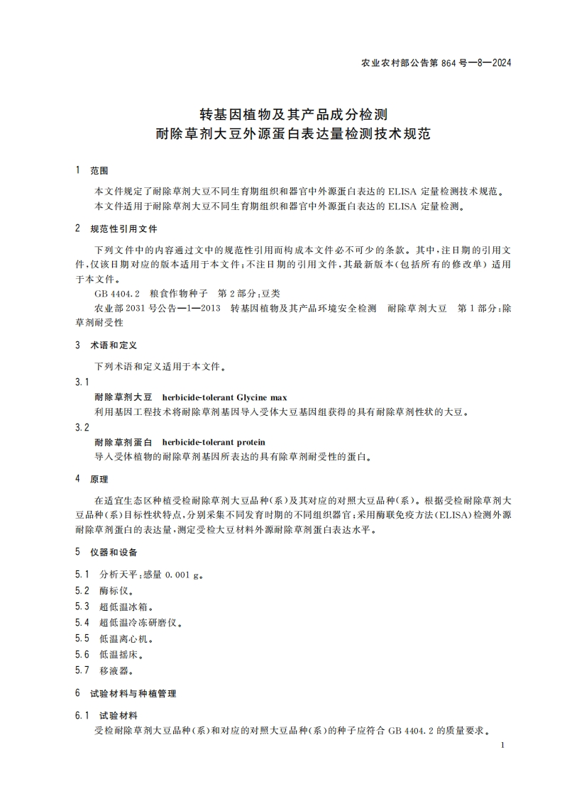 农业农村部公告第864号-8-2024转基因植物及其产品成分检测耐除草剂大豆外源蛋白表达量检测技术规范348072@abc1个月前发布关注私信0.93MB8页049农业农村部公告第864号-8-2024转基因植物及其产品成分检测耐除草剂大豆外源蛋白表达量检测技术规范此内容为付费资源,请付费后查看¥17¥19黄金会员免费钻石会员免费立即购买您当前未登录!建议登陆后购买,可保存购买订单付费资源 第1页 / 共8页 第2页 / 共8页 第3页 / 共8页 第4页 / 共8页 第5页 / 共8页 试读已结束,还剩3页,您可下载完整版后进行离线阅读 THE END农学类标准规范餐饮美食 喜欢就支持一下吧收藏