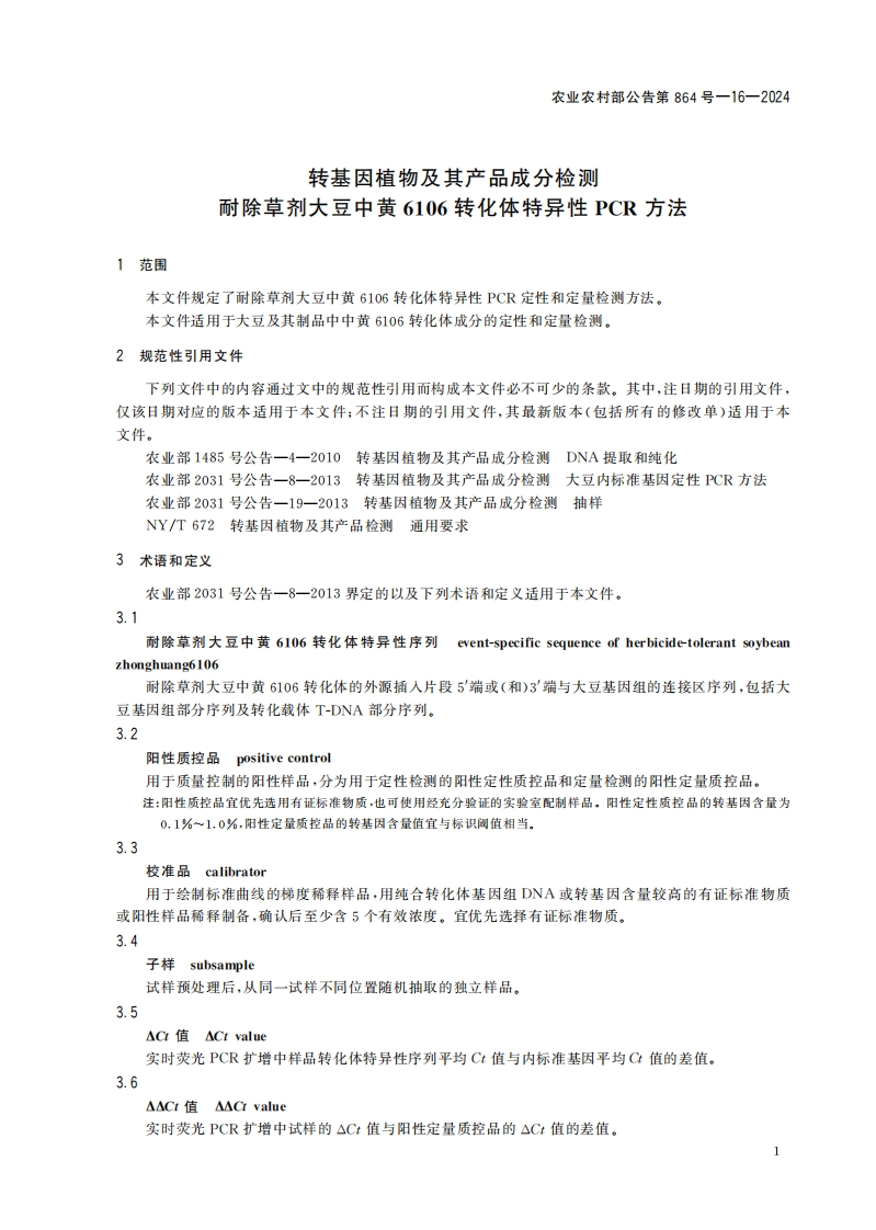 农业农村部公告第864号-16-2024转基因植物及其产品成分检测耐除草剂大豆中黄6106转化体特异性PCR标准方法348072@abc1个月前发布关注私信1.11MB18页033农业农村部公告第864号-16-2024转基因植物及其产品成分检测耐除草剂大豆中黄6106转化体特异性PCR标准方法此内容为付费资源,请付费后查看¥17¥19黄金会员免费钻石会员免费立即购买您当前未登录!建议登陆后购买,可保存购买订单付费资源 第1页 / 共18页 第2页 / 共18页 第3页 / 共18页 第4页 / 共18页 第5页 / 共18页 试读已结束,还剩13页,您可下载完整版后进行离线阅读 THE END播放器标准规范餐饮美食 喜欢就支持一下吧收藏