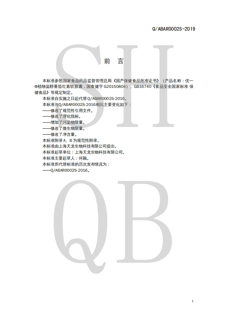 食品安全企业标准Q_ABAR0002S-2019优一®植物甾醇番茄红素软胶囊348072@abc15天前发布关注私信0.24MB8页024食品安全企业标准Q_ABAR0002S-2019优一®植物甾醇番茄红素软胶囊此内容为付费资源,请付费后查看¥17¥19黄金会员免费钻石会员免费立即购买您当前未登录!建议登陆后购买,可保存购买订单付费资源 第1页 / 共8页 第2页 / 共8页 第3页 / 共8页 第4页 / 共8页 第5页 / 共8页 试读已结束,还剩3页,您可下载完整版后进行离线阅读 THE END农学类标准规范餐饮美食 喜欢就支持一下吧收藏