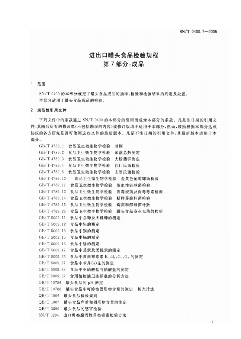 SN_T0400.7-2005进出口罐头食品检验规程第7部分:成品348072@abc1个月前发布关注私信0.20MB8页022SN_T0400.7-2005进出口罐头食品检验规程第7部分:成品此内容为付费资源,请付费后查看¥17¥19黄金会员免费钻石会员免费立即购买您当前未登录!建议登陆后购买,可保存购买订单付费资源 第1页 / 共8页 第2页 / 共8页 第3页 / 共8页 第4页 / 共8页 第5页 / 共8页 试读已结束,还剩3页,您可下载完整版后进行离线阅读 THE END农学类标准规范餐饮美食 喜欢就支持一下吧收藏