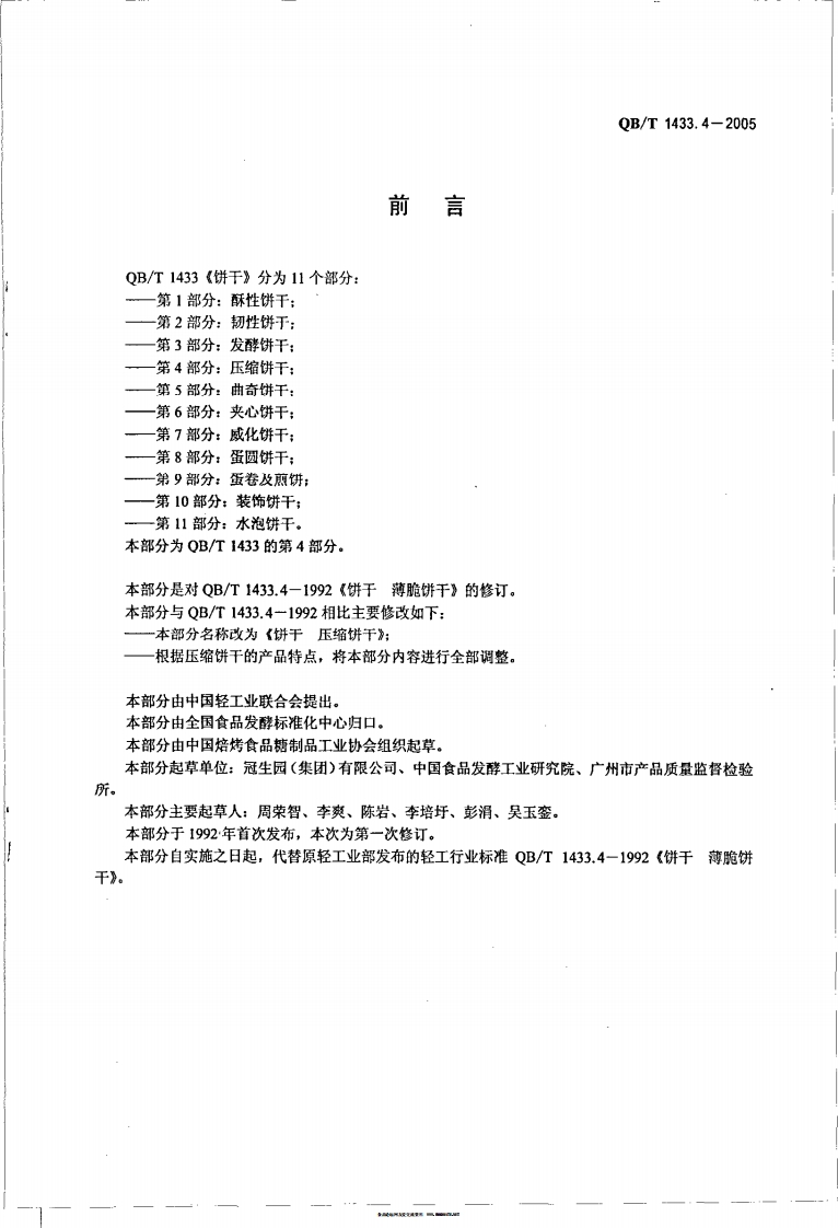 QB_T1433.4-2005饼干压缩饼干348072@abc1个月前发布关注私信0.19MB5页023QB_T1433.4-2005饼干压缩饼干此内容为付费资源,请付费后查看¥13¥19黄金会员免费钻石会员免费立即购买您当前未登录!建议登陆后购买,可保存购买订单付费资源 第1页 / 共5页 第2页 / 共5页 第3页 / 共5页 第4页 / 共5页 第5页 / 共5页 已完成全部阅读,共5页 THE END播放器标准规范餐饮美食 喜欢就支持一下吧收藏