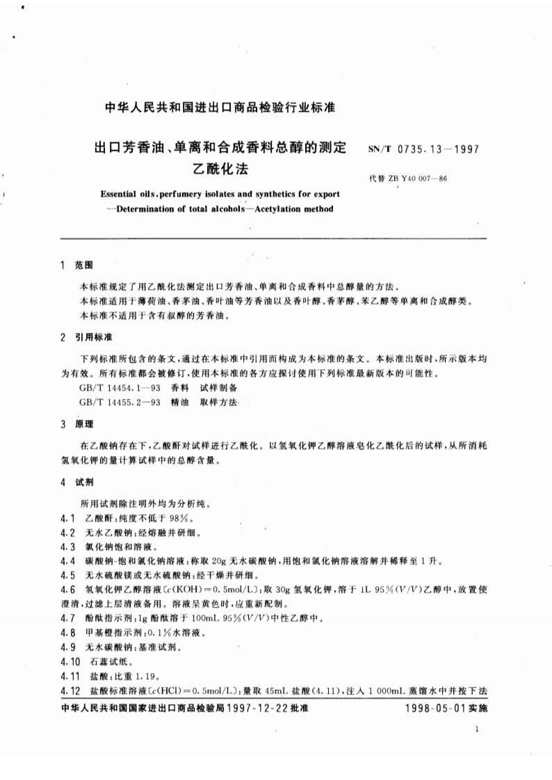 SN_T0735.13-1997出口芳香油、单离和合成香料总醇的标准测定乙酰化法348072@abc1个月前发布关注私信0.16MB5页028SN_T0735.13-1997出口芳香油、单离和合成香料总醇的标准测定乙酰化法此内容为付费资源,请付费后查看¥13¥19黄金会员免费钻石会员免费立即购买您当前未登录!建议登陆后购买,可保存购买订单付费资源 第1页 / 共5页 第2页 / 共5页 第3页 / 共5页 第4页 / 共5页 第5页 / 共5页 已完成全部阅读,共5页 THE END播放器标准规范餐饮美食 喜欢就支持一下吧收藏