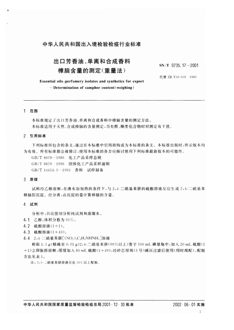 SN_T0735.17-2001出口芳香油、单离和合成香料樟脑含量的标准测定(重量法)348072@abc1个月前发布关注私信68.75KB4页050SN_T0735.17-2001出口芳香油、单离和合成香料樟脑含量的标准测定(重量法)此内容为付费资源,请付费后查看¥13¥19黄金会员免费钻石会员免费立即购买您当前未登录!建议登陆后购买,可保存购买订单付费资源 第1页 / 共4页 第2页 / 共4页 第3页 / 共4页 第4页 / 共4页 已完成全部阅读,共4页 THE END播放器标准规范餐饮美食 喜欢就支持一下吧收藏