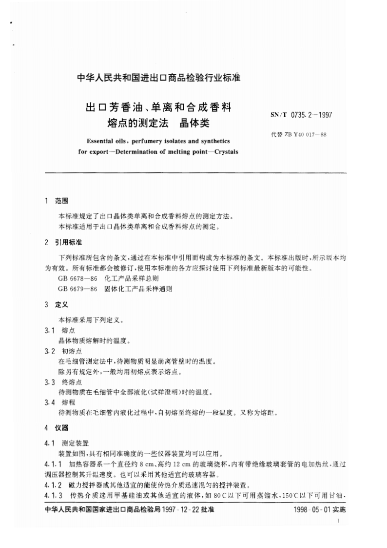 SN_T0735.2-1997出口芳香油、单离和合成香料熔点的标准测定法晶体类348072@abc1个月前发布关注私信0.16MB5页023SN_T0735.2-1997出口芳香油、单离和合成香料熔点的标准测定法晶体类此内容为付费资源,请付费后查看¥13¥19黄金会员免费钻石会员免费立即购买您当前未登录!建议登陆后购买,可保存购买订单付费资源 第1页 / 共5页 第2页 / 共5页 第3页 / 共5页 第4页 / 共5页 第5页 / 共5页 已完成全部阅读,共5页 THE END播放器标准规范餐饮美食 喜欢就支持一下吧收藏