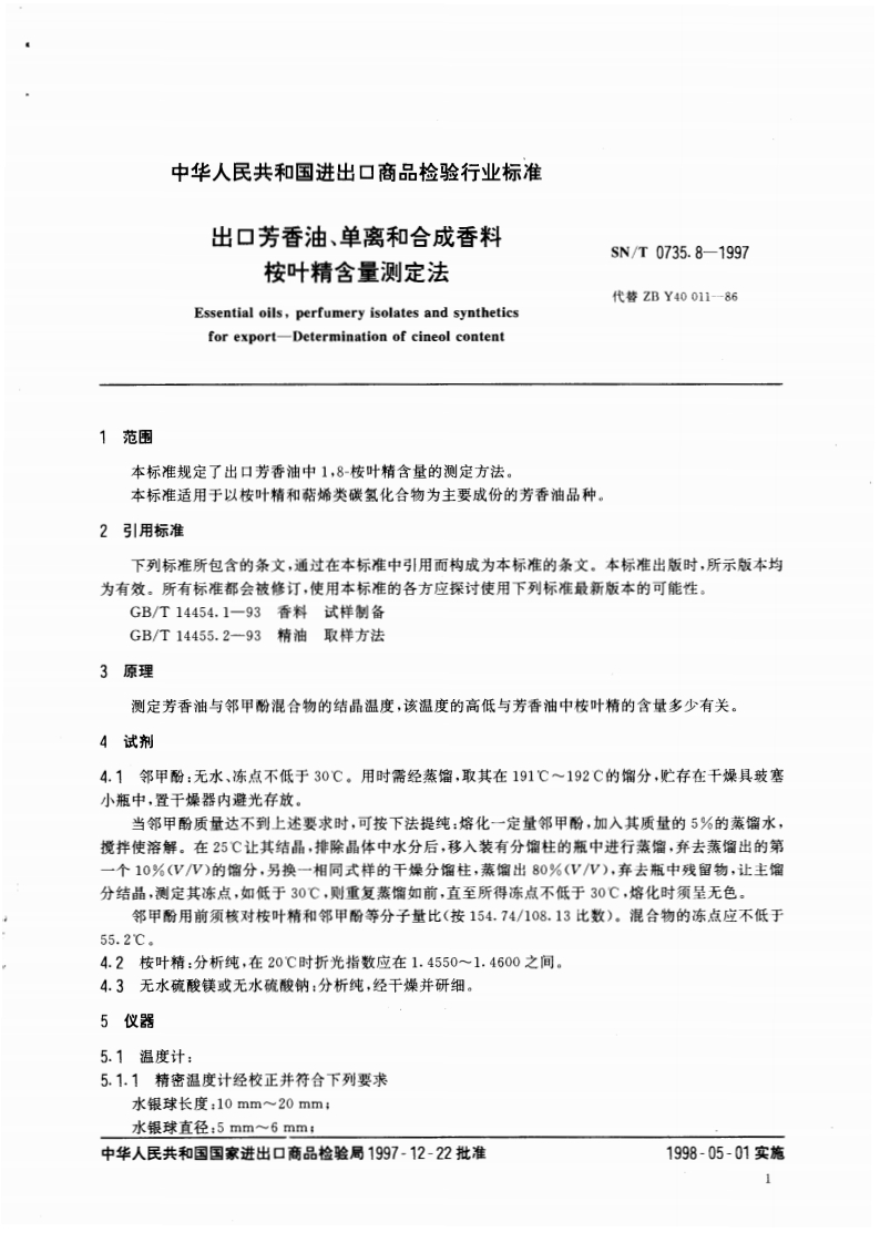 SN_T0735.8-1997出口芳香油、单离和合成香料桉叶精含量标准测定法348072@abc1个月前发布关注私信0.17MB5页042SN_T0735.8-1997出口芳香油、单离和合成香料桉叶精含量标准测定法此内容为付费资源,请付费后查看¥13¥19黄金会员免费钻石会员免费立即购买您当前未登录!建议登陆后购买,可保存购买订单付费资源 第1页 / 共5页 第2页 / 共5页 第3页 / 共5页 第4页 / 共5页 第5页 / 共5页 已完成全部阅读,共5页 THE END农学类标准规范餐饮美食 喜欢就支持一下吧收藏