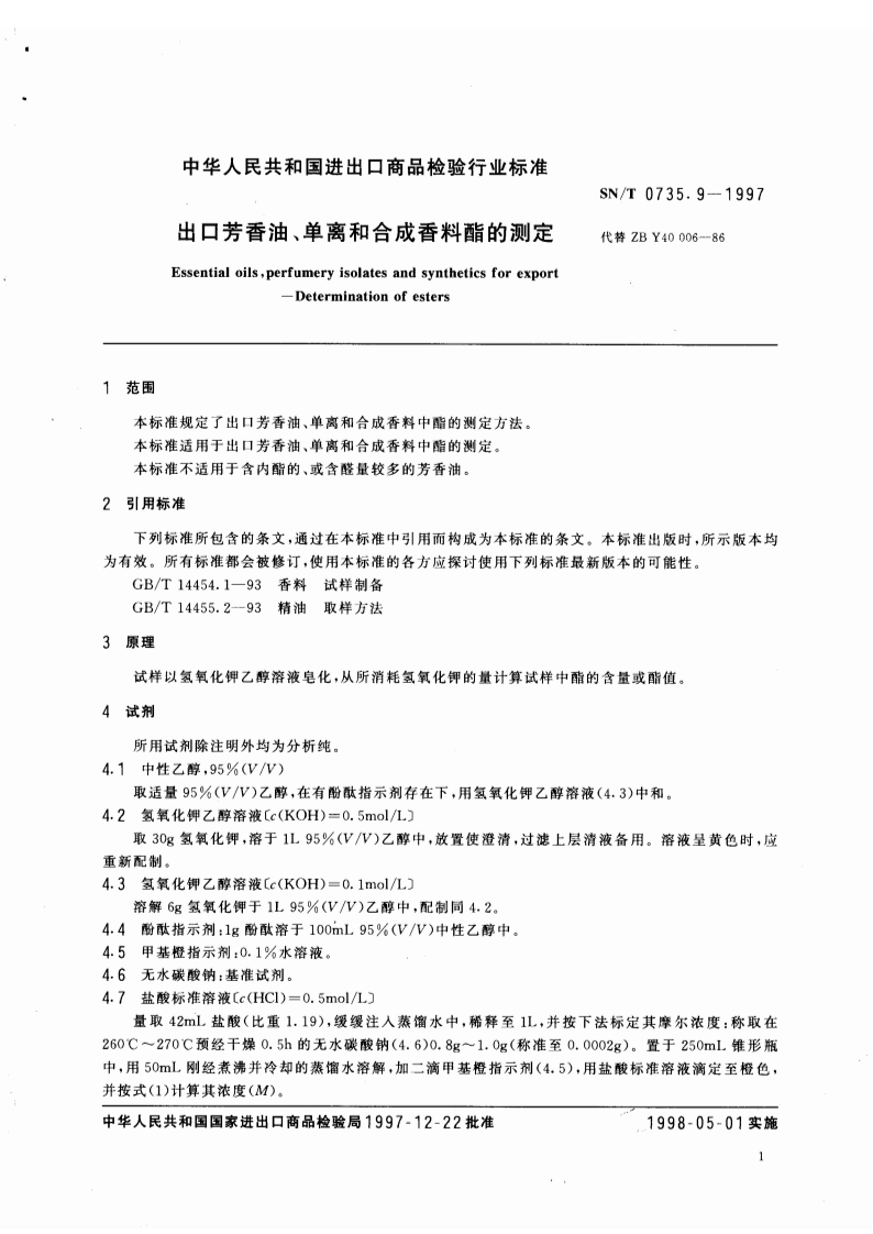 SN_T0735.9-1997出口芳香油、单离和合成香料酯的标准测定348072@abc1个月前发布关注私信0.14MB5页042SN_T0735.9-1997出口芳香油、单离和合成香料酯的标准测定此内容为付费资源,请付费后查看¥13¥19黄金会员免费钻石会员免费立即购买您当前未登录!建议登陆后购买,可保存购买订单付费资源 第1页 / 共5页 第2页 / 共5页 第3页 / 共5页 第4页 / 共5页 第5页 / 共5页 已完成全部阅读,共5页 THE END农学类标准规范餐饮美食 喜欢就支持一下吧收藏