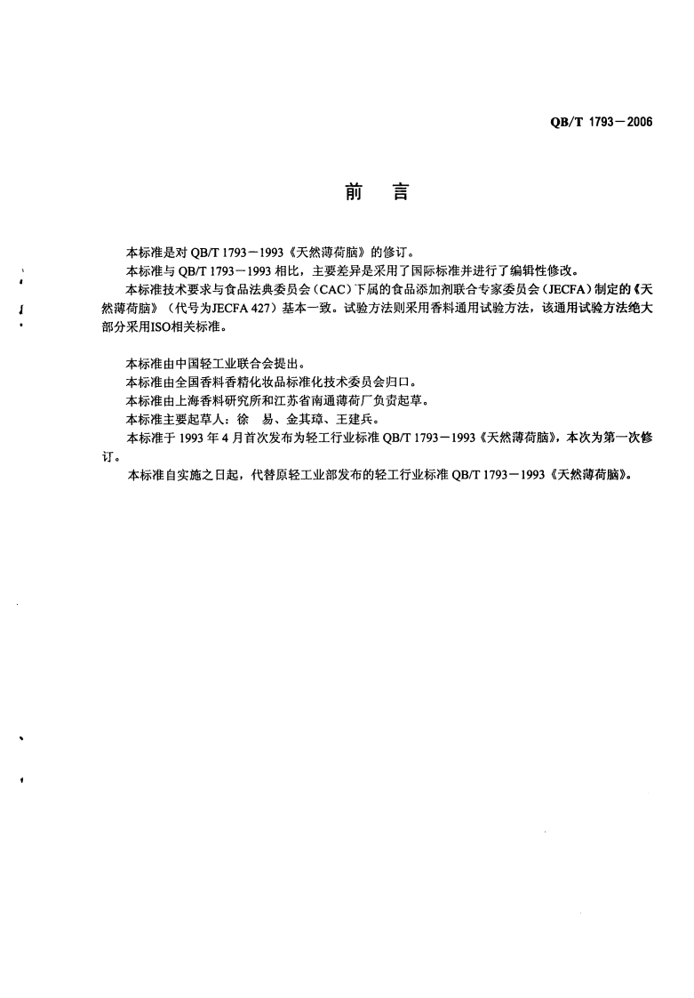 QB_T1793-2006天然薄荷脑348072@abc13天前发布关注私信0.14MB6页043QB_T1793-2006天然薄荷脑此内容为付费资源,请付费后查看¥13¥19黄金会员免费钻石会员免费立即购买您当前未登录!建议登陆后购买,可保存购买订单付费资源 第1页 / 共6页 第2页 / 共6页 第3页 / 共6页 第4页 / 共6页 第5页 / 共6页 试读已结束,还剩1页,您可下载完整版后进行离线阅读 THE END农学类标准规范餐饮美食 喜欢就支持一下吧收藏