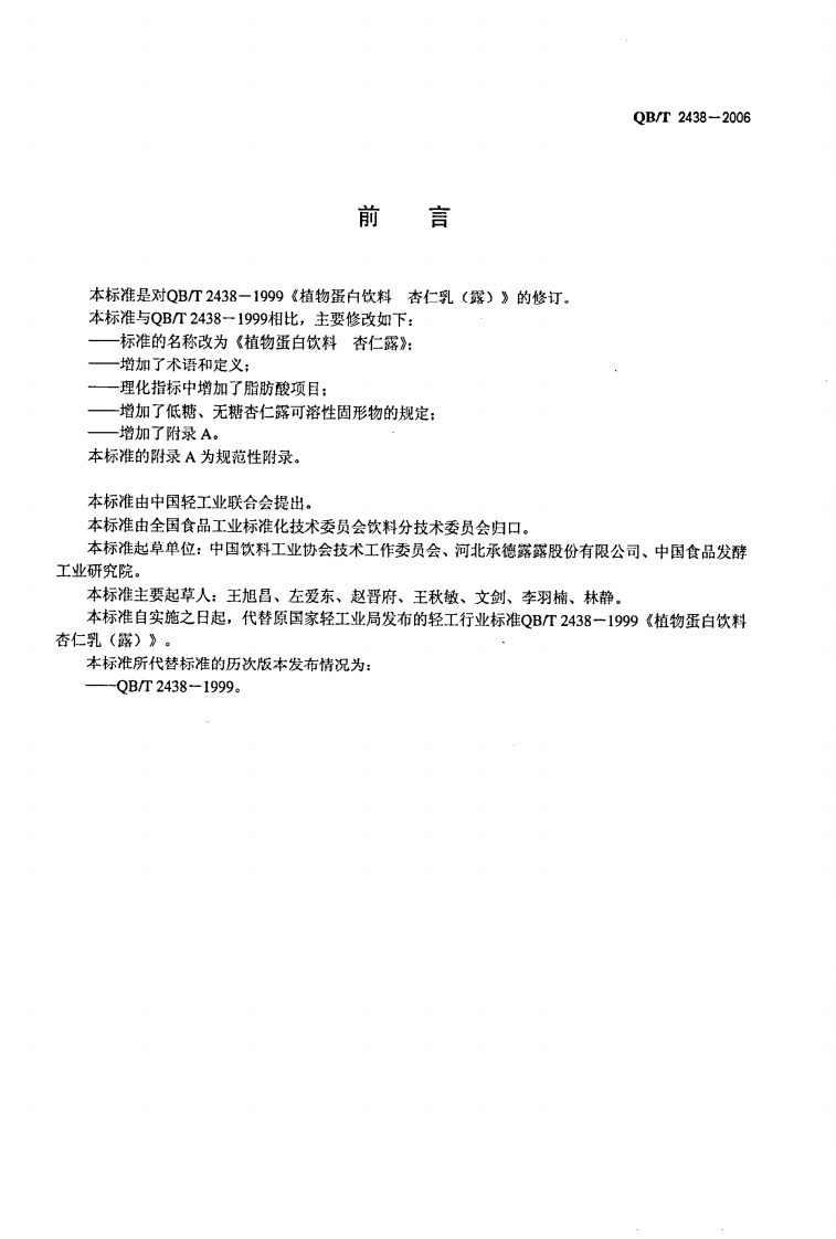 QB_T2438-2006植物蛋白饮料杏仁露348072@abc1个月前发布关注私信0.25MB9页043QB_T2438-2006植物蛋白饮料杏仁露此内容为付费资源,请付费后查看¥13¥19黄金会员免费钻石会员免费立即购买您当前未登录!建议登陆后购买,可保存购买订单付费资源 第1页 / 共9页 第2页 / 共9页 第3页 / 共9页 第4页 / 共9页 第5页 / 共9页 试读已结束,还剩4页,您可下载完整版后进行离线阅读 THE END农学类标准规范餐饮美食 喜欢就支持一下吧收藏