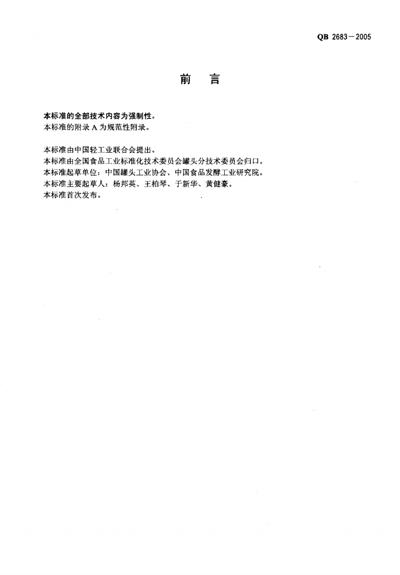 QB_T2683-2005罐头食品代号的标示标准要求348072@abc1个月前发布关注私信0.54MB20页020QB_T2683-2005罐头食品代号的标示标准要求此内容为付费资源,请付费后查看¥13¥19黄金会员免费钻石会员免费立即购买您当前未登录!建议登陆后购买,可保存购买订单付费资源 第1页 / 共20页 第2页 / 共20页 第3页 / 共20页 第4页 / 共20页 第5页 / 共20页 试读已结束,还剩15页,您可下载完整版后进行离线阅读 THE END农学类标准规范餐饮美食 喜欢就支持一下吧收藏