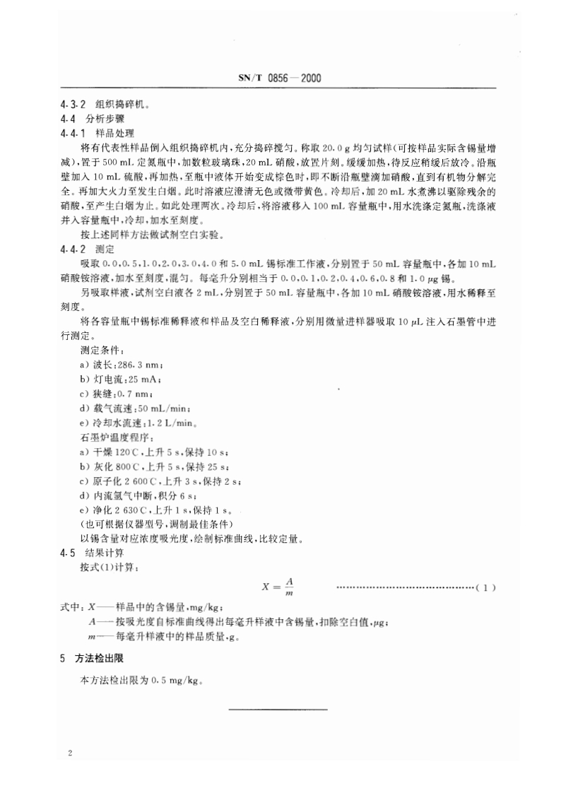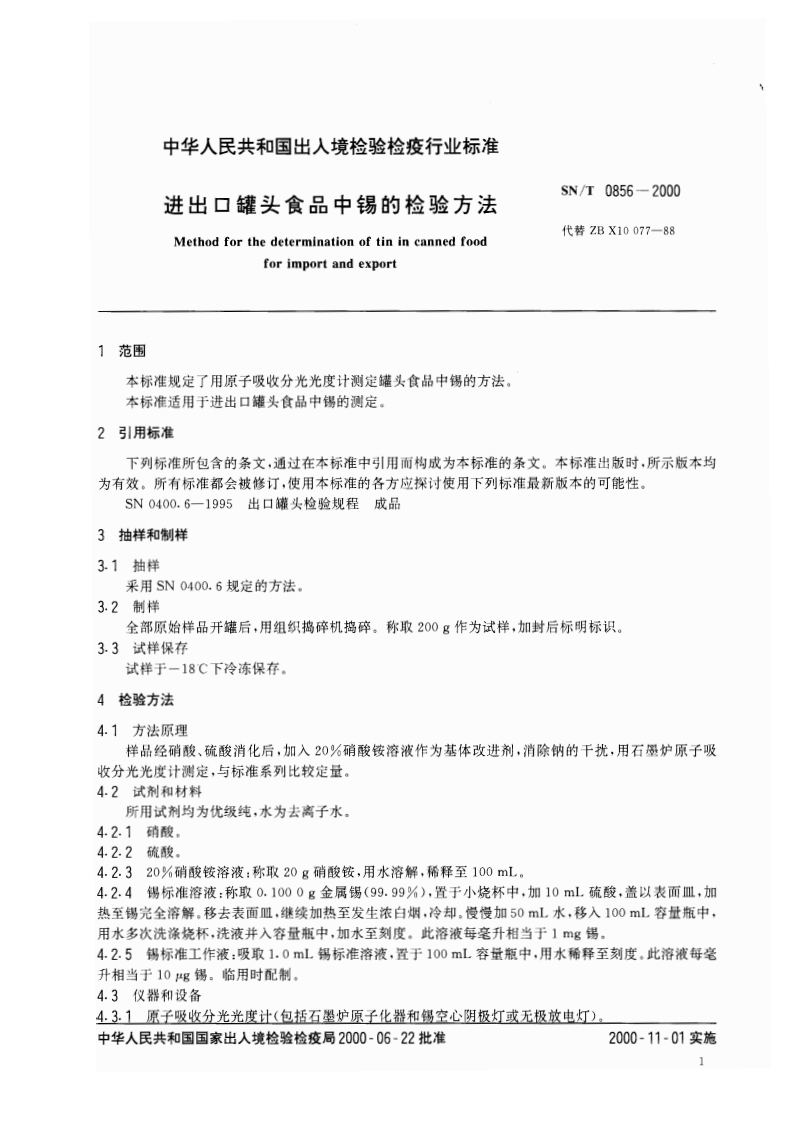SN_T0856-2000进出口罐头食品中锡的检验标准方法348072@abc1个月前发布关注私信74.31KB4页043SN_T0856-2000进出口罐头食品中锡的检验标准方法此内容为付费资源,请付费后查看¥13¥19黄金会员免费钻石会员免费立即购买您当前未登录!建议登陆后购买,可保存购买订单付费资源 第1页 / 共4页 第2页 / 共4页 第3页 / 共4页 第4页 / 共4页 已完成全部阅读,共4页 THE END播放器标准规范餐饮美食 喜欢就支持一下吧收藏