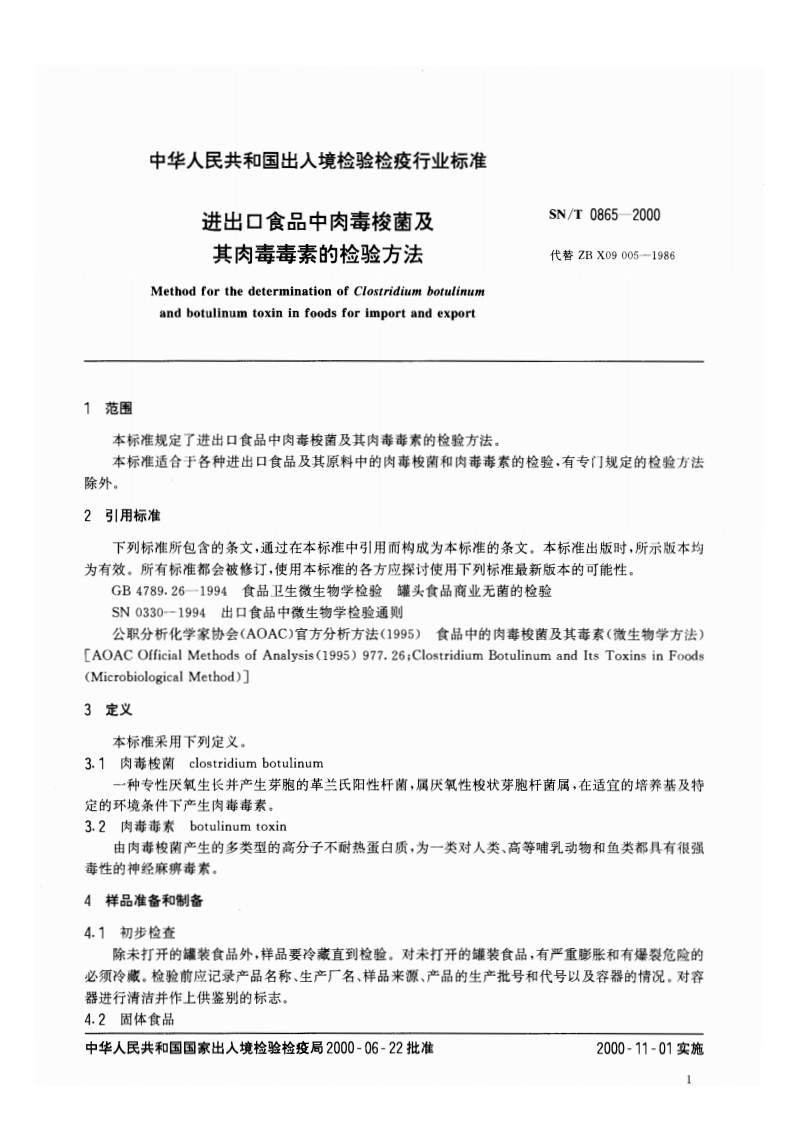 SN_T0865-2000进出口食品中肉毒梭菌及其肉毒毒素的检验标准方法348072@abc1个月前发布关注私信0.27MB20页049SN_T0865-2000进出口食品中肉毒梭菌及其肉毒毒素的检验标准方法此内容为付费资源,请付费后查看¥13¥19黄金会员免费钻石会员免费立即购买您当前未登录!建议登陆后购买,可保存购买订单付费资源 第1页 / 共20页 第2页 / 共20页 第3页 / 共20页 第4页 / 共20页 第5页 / 共20页 试读已结束,还剩15页,您可下载完整版后进行离线阅读 THE END农学类标准规范餐饮美食 喜欢就支持一下吧收藏