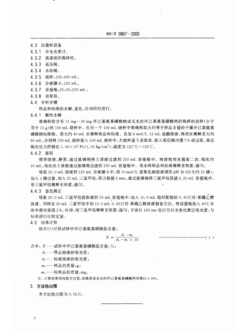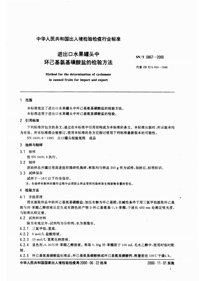 SN_T0867-2000进出口水果罐头中环己基氨基磺酸盐的检验标准方法348072@abc1个月前发布关注私信0.14MB4页046SN_T0867-2000进出口水果罐头中环己基氨基磺酸盐的检验标准方法此内容为付费资源,请付费后查看¥13¥19黄金会员免费钻石会员免费立即购买您当前未登录!建议登陆后购买,可保存购买订单付费资源 第1页 / 共4页 第2页 / 共4页 第3页 / 共4页 第4页 / 共4页 已完成全部阅读,共4页 THE END农学类标准规范餐饮美食 喜欢就支持一下吧收藏