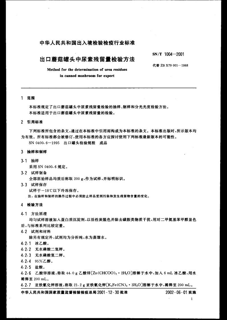 SN_T1004-2001出口蘑菇罐头中尿素残留量检验标准方法348072@abc3个月前发布关注私信0.10MB6页023SN_T1004-2001出口蘑菇罐头中尿素残留量检验标准方法此内容为付费资源,请付费后查看¥13¥19黄金会员免费钻石会员免费立即购买您当前未登录!建议登陆后购买,可保存购买订单付费资源 第1页 / 共6页 第2页 / 共6页 第3页 / 共6页 第4页 / 共6页 第5页 / 共6页 试读已结束,还剩1页,您可下载完整版后进行离线阅读 THE END播放器标准规范餐饮美食 喜欢就支持一下吧收藏