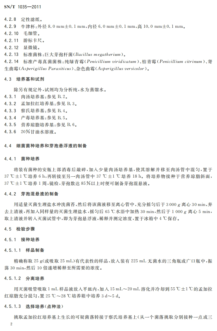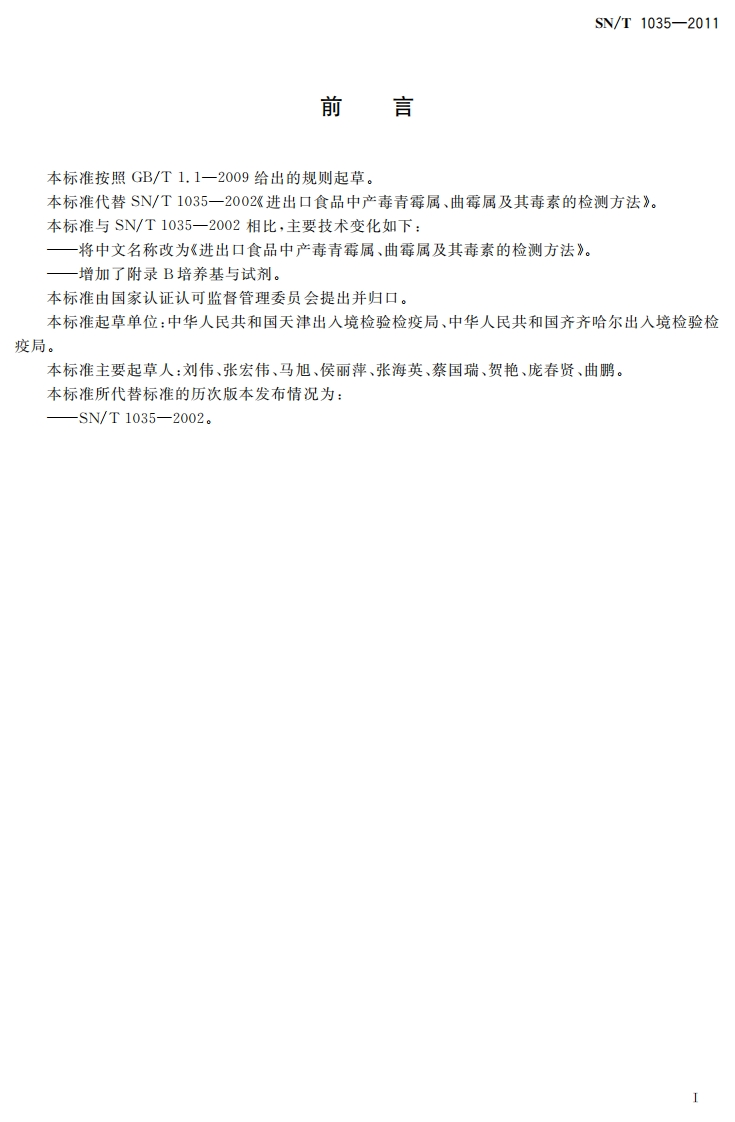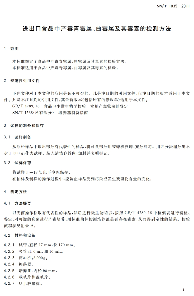 SN_T1035-2011进出口食品中产毒青霉属、曲霉属及其毒素的检测标准方法348072@abc3个月前发布关注私信0.79MB8页032SN_T1035-2011进出口食品中产毒青霉属、曲霉属及其毒素的检测标准方法此内容为付费资源,请付费后查看¥13¥19黄金会员免费钻石会员免费立即购买您当前未登录!建议登陆后购买,可保存购买订单付费资源 第1页 / 共8页 第2页 / 共8页 第3页 / 共8页 第4页 / 共8页 第5页 / 共8页 试读已结束,还剩3页,您可下载完整版后进行离线阅读 THE END播放器标准规范餐饮美食 喜欢就支持一下吧收藏
