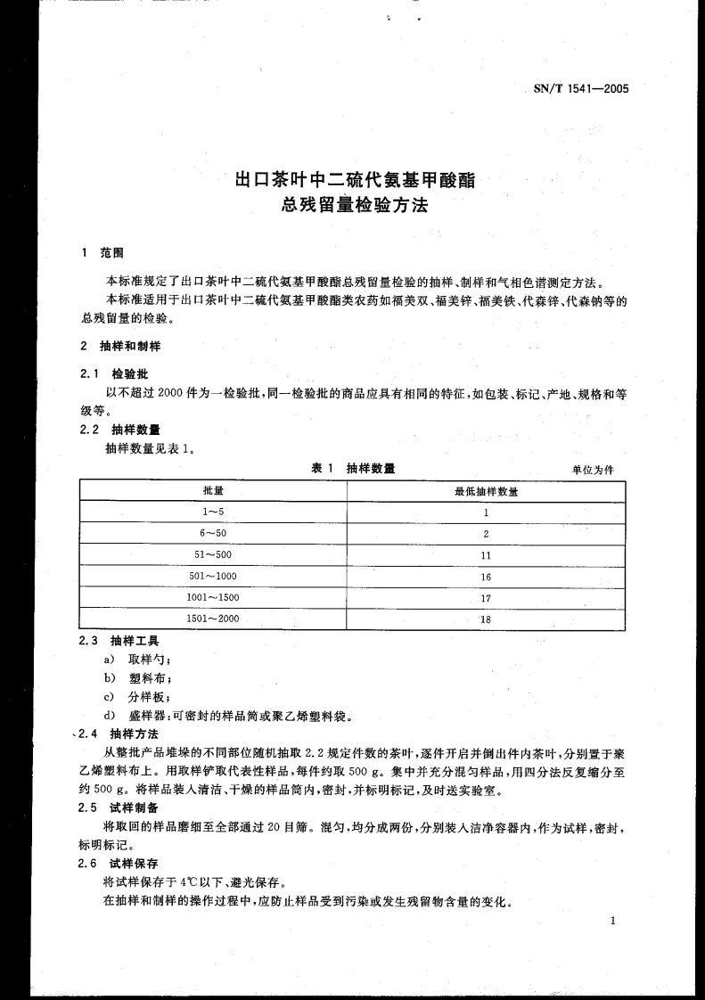 SN_T1541-2005出口茶叶中二硫代氨基甲酸酯总残留量检验标准方法348072@abc1个月前发布关注私信0.27MB13页044SN_T1541-2005出口茶叶中二硫代氨基甲酸酯总残留量检验标准方法此内容为付费资源,请付费后查看¥13¥19黄金会员免费钻石会员免费立即购买您当前未登录!建议登陆后购买,可保存购买订单付费资源 第1页 / 共13页 第2页 / 共13页 第3页 / 共13页 第4页 / 共13页 第5页 / 共13页 试读已结束,还剩8页,您可下载完整版后进行离线阅读 THE END农学类标准规范餐饮美食 喜欢就支持一下吧收藏