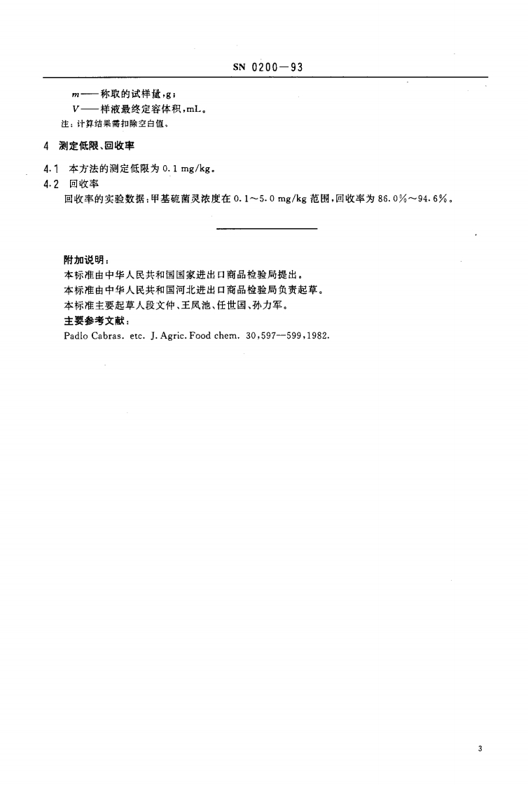 SN0200-1993出口水果罐头中甲基硫菌灵残留量检验标准方法348072@abc1个月前发布关注私信0.19MB8页026SN0200-1993出口水果罐头中甲基硫菌灵残留量检验标准方法此内容为付费资源,请付费后查看¥11¥19黄金会员免费钻石会员免费立即购买您当前未登录!建议登陆后购买,可保存购买订单付费资源 第1页 / 共8页 第2页 / 共8页 第3页 / 共8页 第4页 / 共8页 第5页 / 共8页 试读已结束,还剩3页,您可下载完整版后进行离线阅读 THE END播放器标准规范餐饮美食 喜欢就支持一下吧收藏