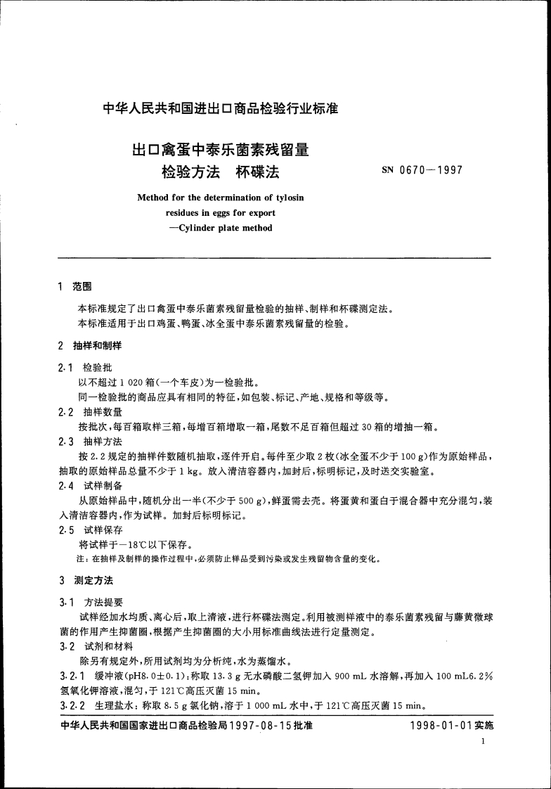 SN0670-1997出口禽蛋中泰乐菌素残留量检验标准方法杯碟法348072@abc1个月前发布关注私信0.57MB14页048SN0670-1997出口禽蛋中泰乐菌素残留量检验标准方法杯碟法此内容为付费资源,请付费后查看¥11¥19黄金会员免费钻石会员免费立即购买您当前未登录!建议登陆后购买,可保存购买订单付费资源 第1页 / 共14页 第2页 / 共14页 第3页 / 共14页 第4页 / 共14页 第5页 / 共14页 试读已结束,还剩9页,您可下载完整版后进行离线阅读 THE END播放器标准规范餐饮美食 喜欢就支持一下吧收藏
