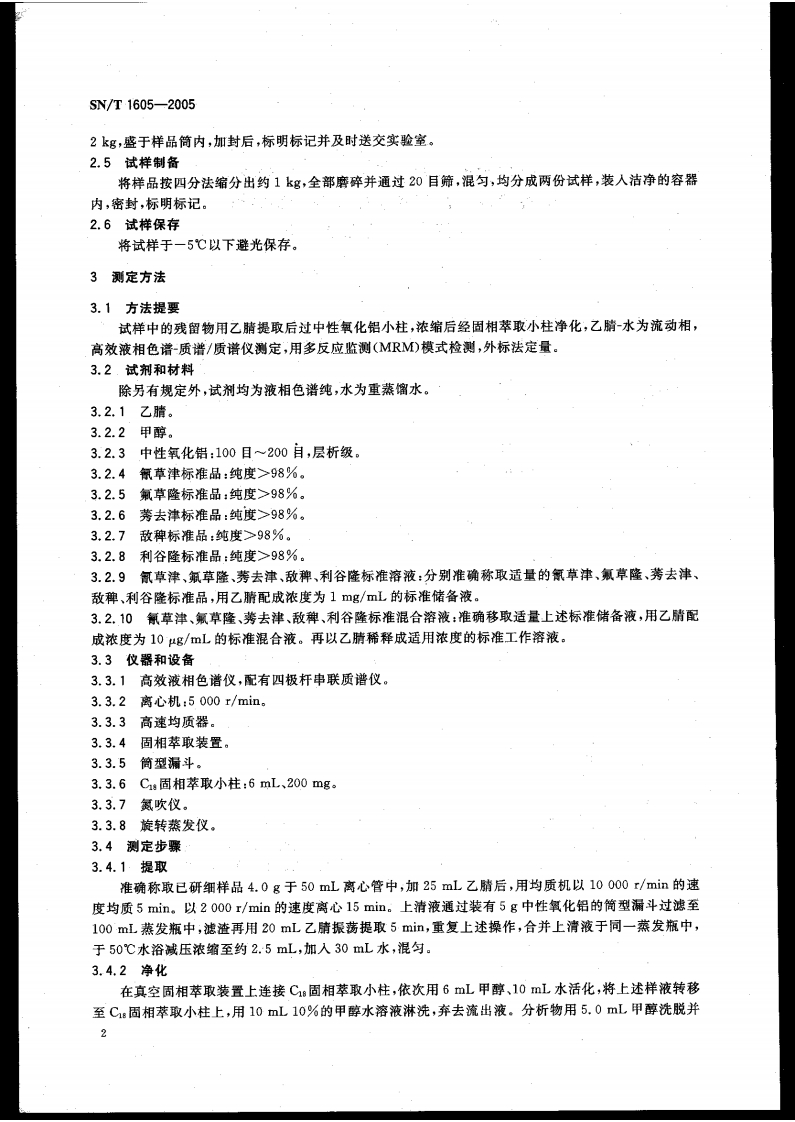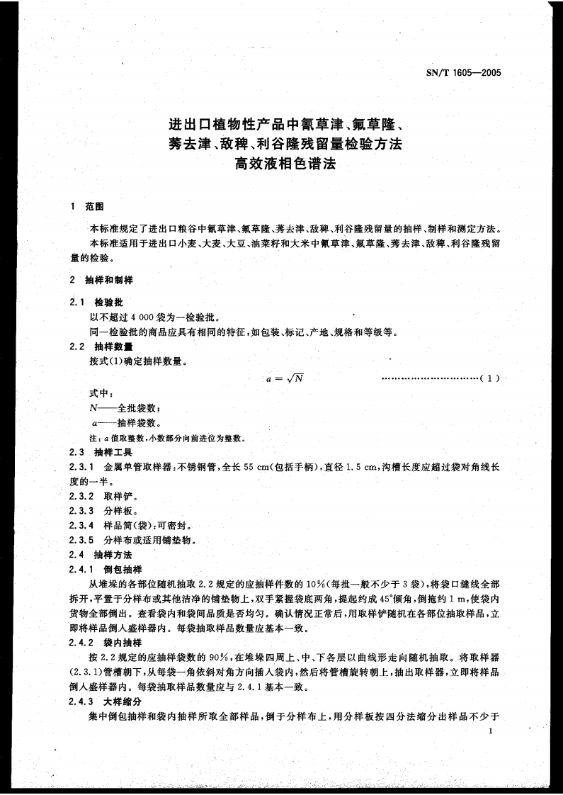 SN_T1605-2005进出口植物性产品中氰草津、氟草隆、莠去津、敌稗、利谷隆残留量检验标准方法高效液相色谱法348072@abc1个月前发布关注私信0.44MB18页026SN_T1605-2005进出口植物性产品中氰草津、氟草隆、莠去津、敌稗、利谷隆残留量检验标准方法高效液相色谱法此内容为付费资源,请付费后查看¥11¥19黄金会员免费钻石会员免费立即购买您当前未登录!建议登陆后购买,可保存购买订单付费资源 第1页 / 共18页 第2页 / 共18页 第3页 / 共18页 第4页 / 共18页 第5页 / 共18页 试读已结束,还剩13页,您可下载完整版后进行离线阅读 THE END播放器标准规范餐饮美食 喜欢就支持一下吧收藏