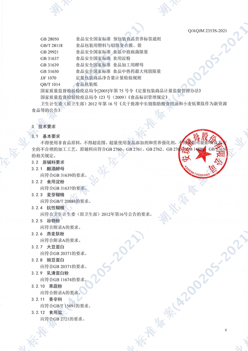 食品安全企业标准Q_AQJM2353S-2021即食酵母(方便食品)348072@abc1个月前发布关注私信2.33MB10页050食品安全企业标准Q_AQJM2353S-2021即食酵母(方便食品)此内容为付费资源,请付费后查看¥16¥19黄金会员免费钻石会员免费立即购买您当前未登录!建议登陆后购买,可保存购买订单付费资源 第1页 / 共10页 第2页 / 共10页 第3页 / 共10页 第4页 / 共10页 第5页 / 共10页 试读已结束,还剩5页,您可下载完整版后进行离线阅读 THE END播放器标准规范餐饮美食 喜欢就支持一下吧收藏