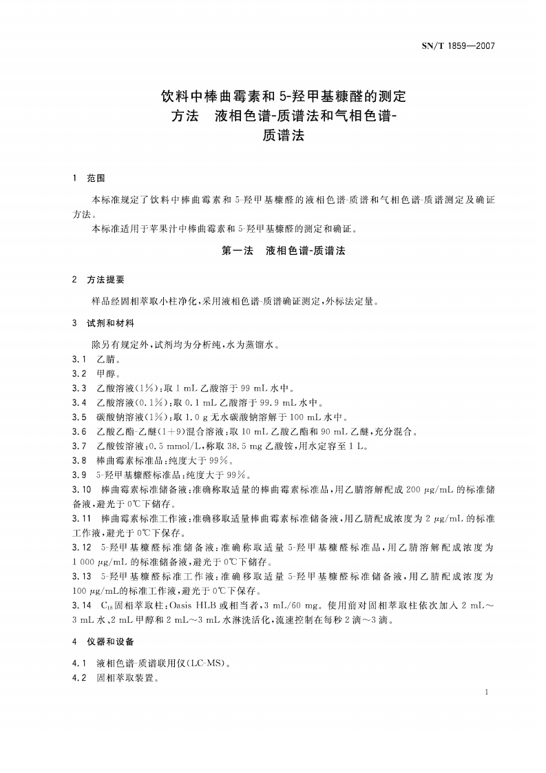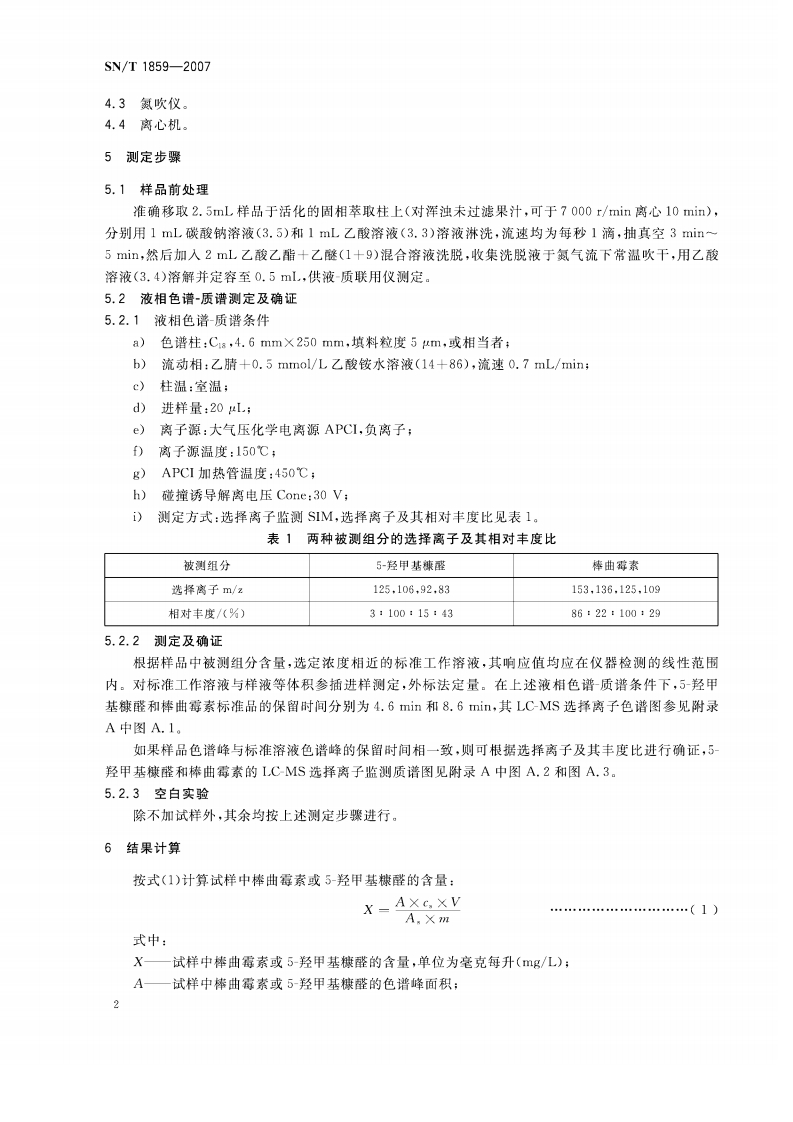 SN_T1859-2007饮料中棒曲霉素和5-羟甲基糠醛的标准测定标准方法液相色谱-质谱法和气相色谱-质谱法348072@abc1个月前发布关注私信0.61MB23页029SN_T1859-2007饮料中棒曲霉素和5-羟甲基糠醛的标准测定标准方法液相色谱-质谱法和气相色谱-质谱法此内容为付费资源,请付费后查看¥13¥19黄金会员免费钻石会员免费立即购买您当前未登录!建议登陆后购买,可保存购买订单付费资源 第1页 / 共23页 第2页 / 共23页 第3页 / 共23页 第4页 / 共23页 第5页 / 共23页 试读已结束,还剩18页,您可下载完整版后进行离线阅读 THE END播放器标准规范餐饮美食 喜欢就支持一下吧收藏
