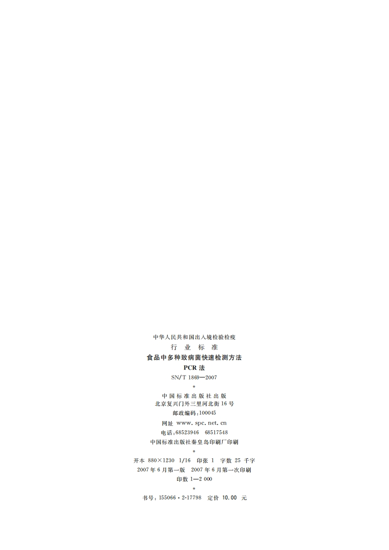 SN_T1869-2007食品中多种致病菌快速检测标准方法PCR法348072@abc1个月前发布关注私信0.90MB15页045SN_T1869-2007食品中多种致病菌快速检测标准方法PCR法此内容为付费资源,请付费后查看¥13¥19黄金会员免费钻石会员免费立即购买您当前未登录!建议登陆后购买,可保存购买订单付费资源 第1页 / 共15页 第2页 / 共15页 第3页 / 共15页 第4页 / 共15页 第5页 / 共15页 试读已结束,还剩10页,您可下载完整版后进行离线阅读 THE END播放器标准规范餐饮美食 喜欢就支持一下吧收藏