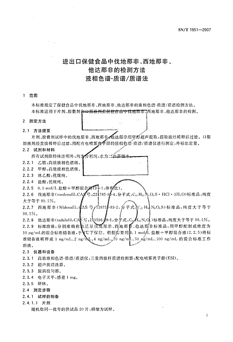 SN_T1951-2007进出口保健食品中伐地那非、西地那非、他达那非的检测标准方法液相色谱-质谱_质谱法348072@abc1个月前发布关注私信0.37MB17页025SN_T1951-2007进出口保健食品中伐地那非、西地那非、他达那非的检测标准方法液相色谱-质谱_质谱法此内容为付费资源,请付费后查看¥13¥19黄金会员免费钻石会员免费立即购买您当前未登录!建议登陆后购买,可保存购买订单付费资源 第1页 / 共17页 第2页 / 共17页 第3页 / 共17页 第4页 / 共17页 第5页 / 共17页 试读已结束,还剩12页,您可下载完整版后进行离线阅读 THE END播放器标准规范餐饮美食 喜欢就支持一下吧收藏