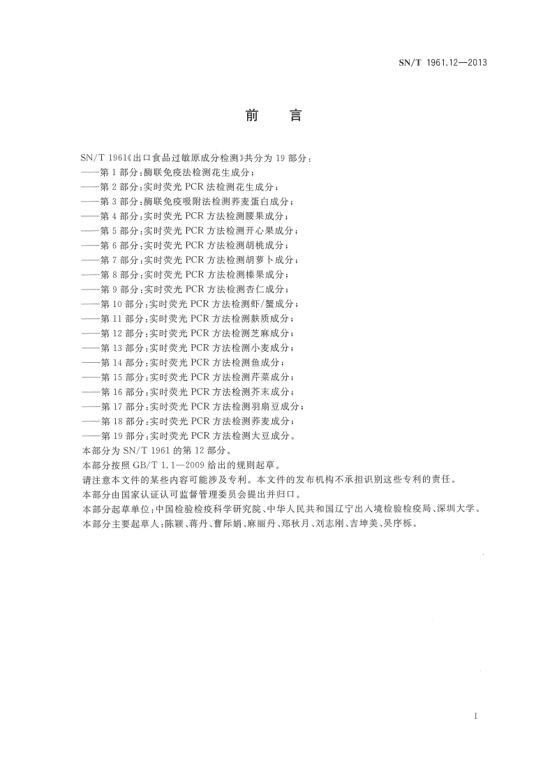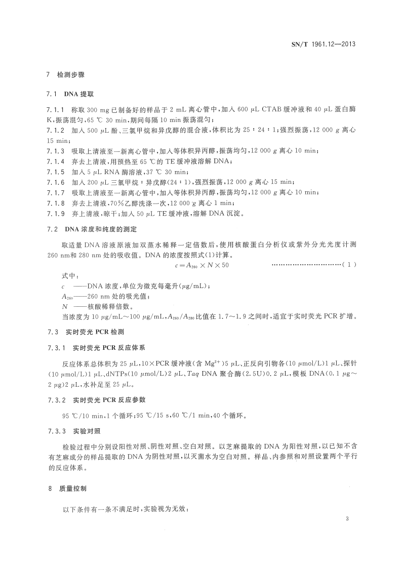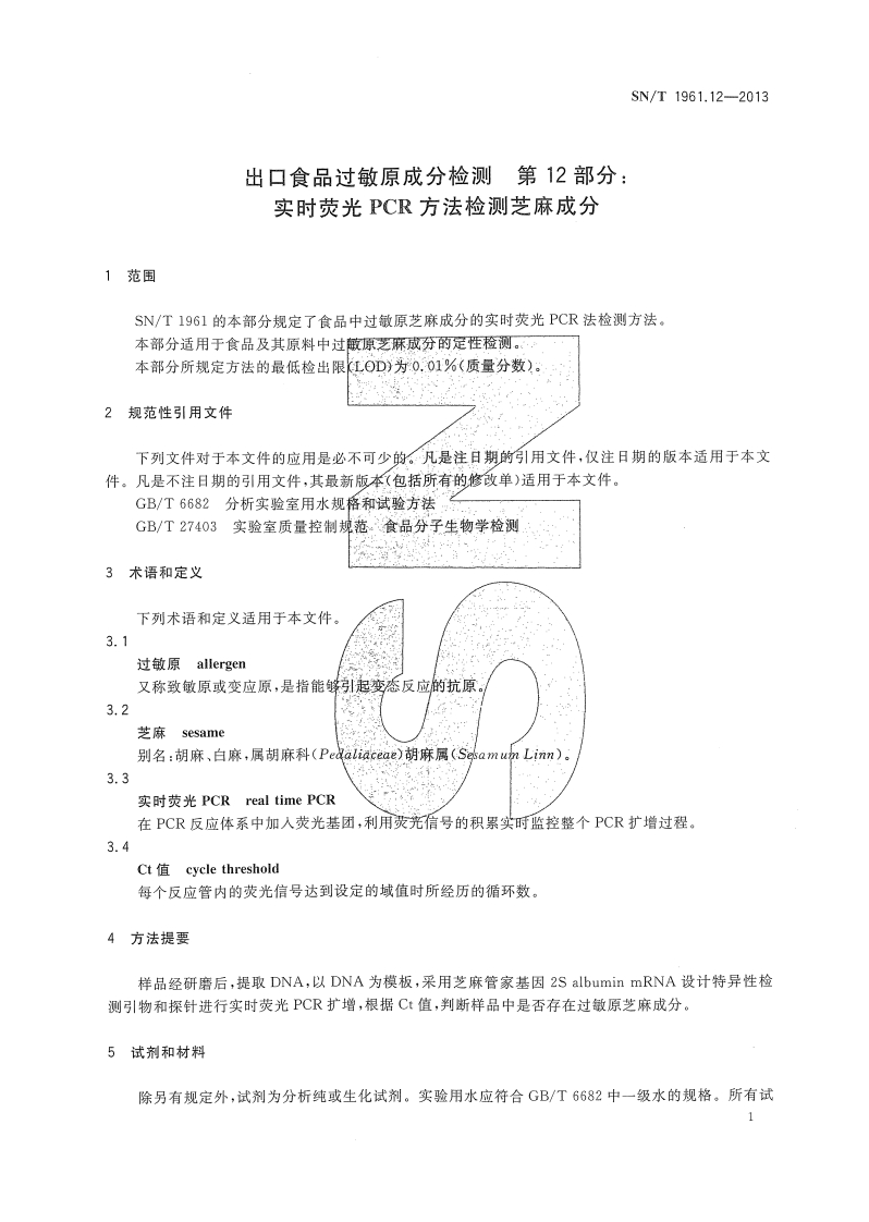 SN_T1961.12-2013出口食品过敏原成分检测第12部分:实时荧光PCR标准方法检测芝麻成分348072@abc1个月前发布关注私信0.49MB7页038SN_T1961.12-2013出口食品过敏原成分检测第12部分:实时荧光PCR标准方法检测芝麻成分此内容为付费资源,请付费后查看¥13¥19黄金会员免费钻石会员免费立即购买您当前未登录!建议登陆后购买,可保存购买订单付费资源 第1页 / 共7页 第2页 / 共7页 第3页 / 共7页 第4页 / 共7页 第5页 / 共7页 试读已结束,还剩2页,您可下载完整版后进行离线阅读 THE END播放器标准规范餐饮美食 喜欢就支持一下吧收藏