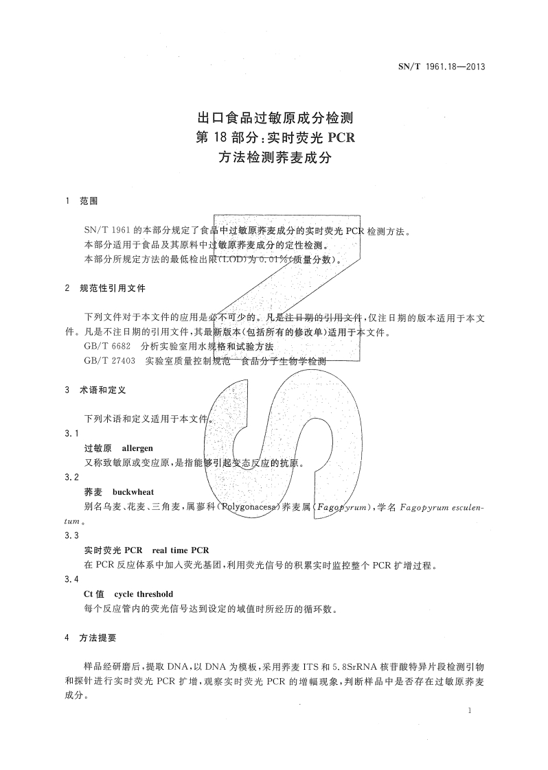 SN_T1961.18-2013出口食品过敏原成分检测第18部分:实时荧光PCR标准方法检测荞麦成分348072@abc1个月前发布关注私信0.50MB7页046SN_T1961.18-2013出口食品过敏原成分检测第18部分:实时荧光PCR标准方法检测荞麦成分此内容为付费资源,请付费后查看¥13¥19黄金会员免费钻石会员免费立即购买您当前未登录!建议登陆后购买,可保存购买订单付费资源 第1页 / 共7页 第2页 / 共7页 第3页 / 共7页 第4页 / 共7页 第5页 / 共7页 试读已结束,还剩2页,您可下载完整版后进行离线阅读 THE END播放器标准规范餐饮美食 喜欢就支持一下吧收藏