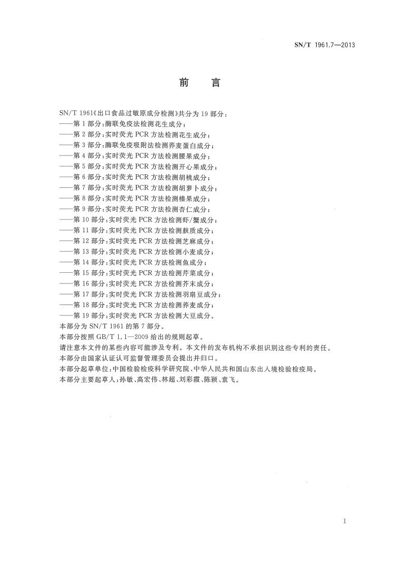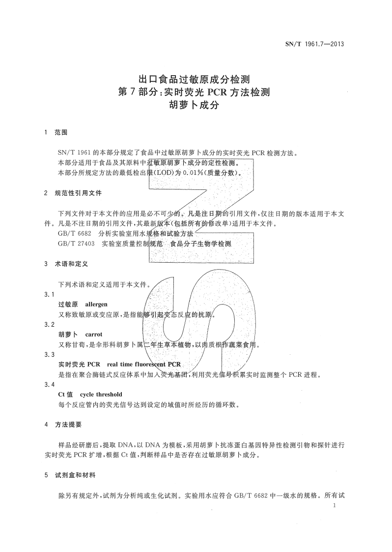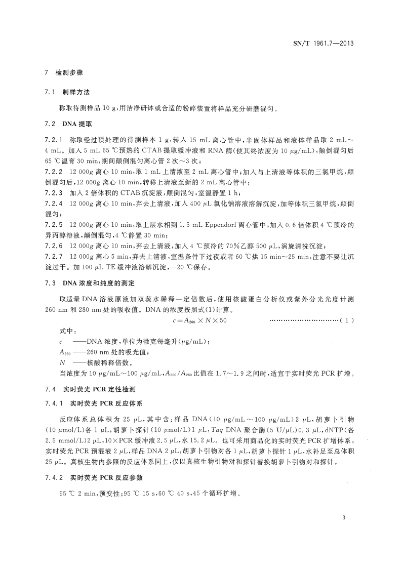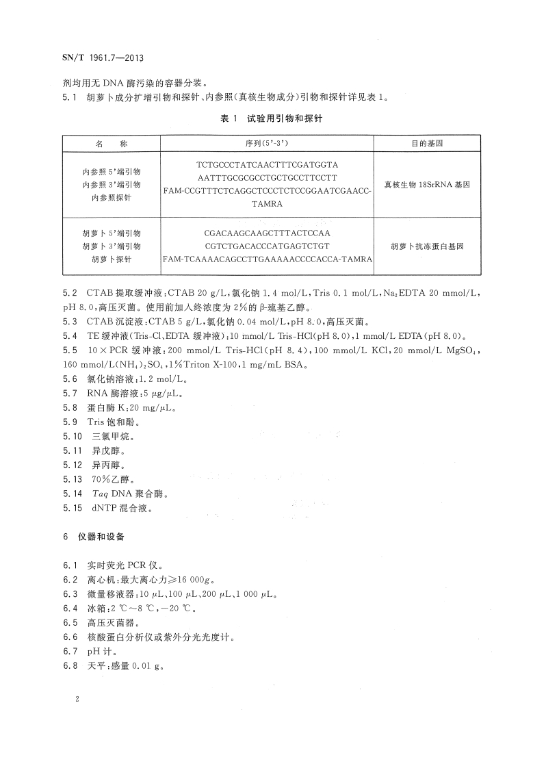 SN_T1961.7-2013出口食品过敏原成分检测第7部分:实时荧光PCR标准方法检测胡萝卜成分348072@abc1个月前发布关注私信0.55MB7页029SN_T1961.7-2013出口食品过敏原成分检测第7部分:实时荧光PCR标准方法检测胡萝卜成分此内容为付费资源,请付费后查看¥13¥19黄金会员免费钻石会员免费立即购买您当前未登录!建议登陆后购买,可保存购买订单付费资源 第1页 / 共7页 第2页 / 共7页 第3页 / 共7页 第4页 / 共7页 第5页 / 共7页 试读已结束,还剩2页,您可下载完整版后进行离线阅读 THE END播放器标准规范餐饮美食 喜欢就支持一下吧收藏