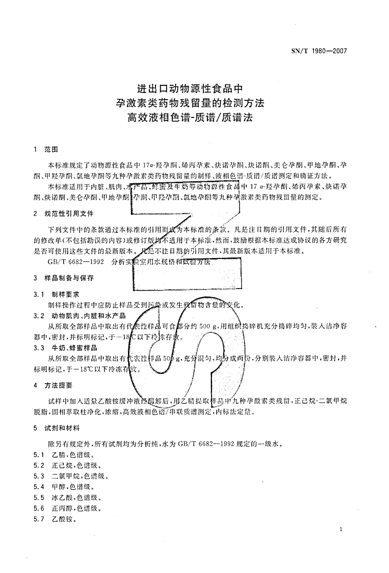 SN_T1980-2007进出口动物源性食品中孕激素类药物残留量的检测标准方法高效液相色谱-质谱_质谱法348072@abc1个月前发布关注私信0.55MB24页031SN_T1980-2007进出口动物源性食品中孕激素类药物残留量的检测标准方法高效液相色谱-质谱_质谱法此内容为付费资源,请付费后查看¥13¥19黄金会员免费钻石会员免费立即购买您当前未登录!建议登陆后购买,可保存购买订单付费资源 第1页 / 共24页 第2页 / 共24页 第3页 / 共24页 第4页 / 共24页 第5页 / 共24页 试读已结束,还剩19页,您可下载完整版后进行离线阅读 THE END播放器标准规范餐饮美食 喜欢就支持一下吧收藏