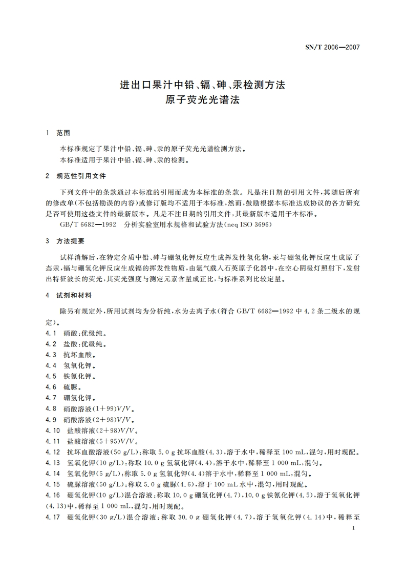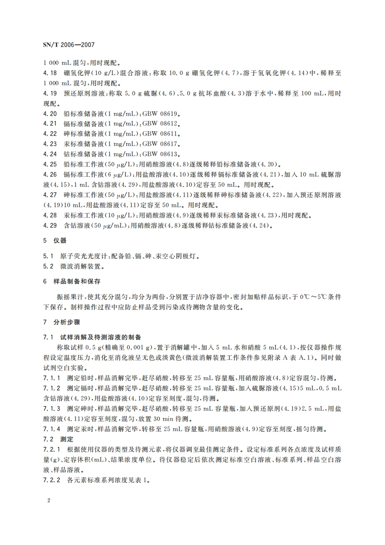 SN_T2006-2007进出口果汁中铅、镉、砷、汞检测标准方法原子荧光光谱法348072@abc1个月前发布关注私信0.69MB16页050SN_T2006-2007进出口果汁中铅、镉、砷、汞检测标准方法原子荧光光谱法此内容为付费资源,请付费后查看¥13¥19黄金会员免费钻石会员免费立即购买您当前未登录!建议登陆后购买,可保存购买订单付费资源 第1页 / 共16页 第2页 / 共16页 第3页 / 共16页 第4页 / 共16页 第5页 / 共16页 试读已结束,还剩11页,您可下载完整版后进行离线阅读 THE END播放器标准规范餐饮美食 喜欢就支持一下吧收藏