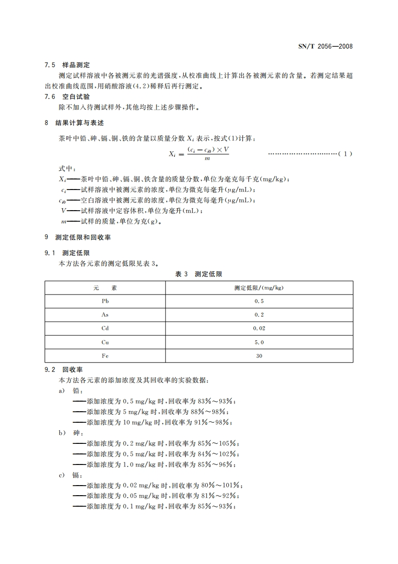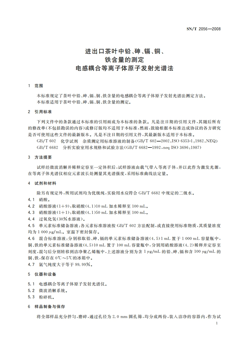 SN_T2056-2008进出口茶叶中铅、砷、镉、铜、铁含量的标准测定电感耦合等离子体原子发射光谱法348072@abc1个月前发布关注私信0.78MB6页026SN_T2056-2008进出口茶叶中铅、砷、镉、铜、铁含量的标准测定电感耦合等离子体原子发射光谱法此内容为付费资源,请付费后查看¥13¥19黄金会员免费钻石会员免费立即购买您当前未登录!建议登陆后购买,可保存购买订单付费资源 第1页 / 共6页 第2页 / 共6页 第3页 / 共6页 第4页 / 共6页 第5页 / 共6页 试读已结束,还剩1页,您可下载完整版后进行离线阅读 THE END播放器标准规范餐饮美食 喜欢就支持一下吧收藏