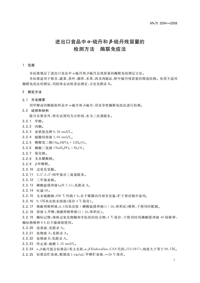 SN_T2094-2008进出口食品中α-硫丹和β-硫丹残留量的检测标准方法酶联免疫法348072@abc1个月前发布关注私信1.27MB22页044SN_T2094-2008进出口食品中α-硫丹和β-硫丹残留量的检测标准方法酶联免疫法此内容为付费资源,请付费后查看¥13¥19黄金会员免费钻石会员免费立即购买您当前未登录!建议登陆后购买,可保存购买订单付费资源 第1页 / 共22页 第2页 / 共22页 第3页 / 共22页 第4页 / 共22页 第5页 / 共22页 试读已结束,还剩17页,您可下载完整版后进行离线阅读 THE END播放器标准规范餐饮美食 喜欢就支持一下吧收藏
