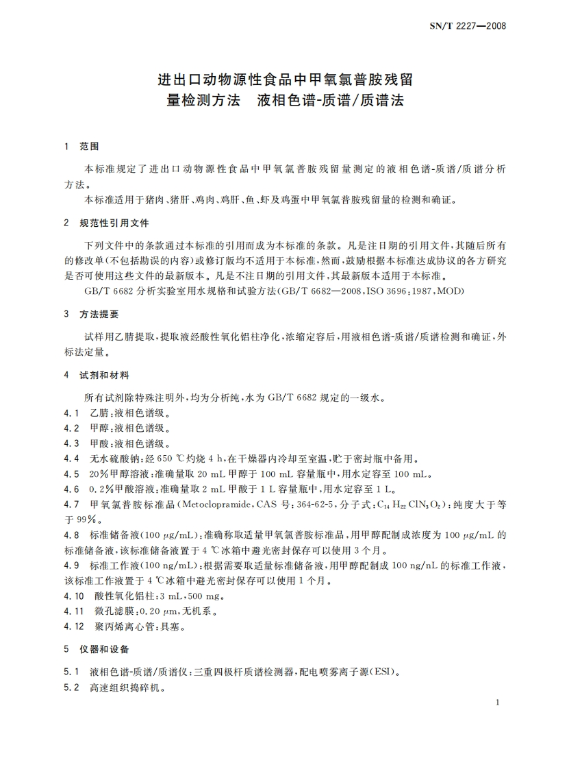 SN_T2227-2008进出口动物源性食品中甲氧氯普胺残留量检测标准方法液相色谱法-质谱_质谱法348072@abc1个月前发布关注私信1.05MB18页049SN_T2227-2008进出口动物源性食品中甲氧氯普胺残留量检测标准方法液相色谱法-质谱_质谱法此内容为付费资源,请付费后查看¥13¥19黄金会员免费钻石会员免费立即购买您当前未登录!建议登陆后购买,可保存购买订单付费资源 第1页 / 共18页 第2页 / 共18页 第3页 / 共18页 第4页 / 共18页 第5页 / 共18页 试读已结束,还剩13页,您可下载完整版后进行离线阅读 THE END播放器标准规范餐饮美食 喜欢就支持一下吧收藏
