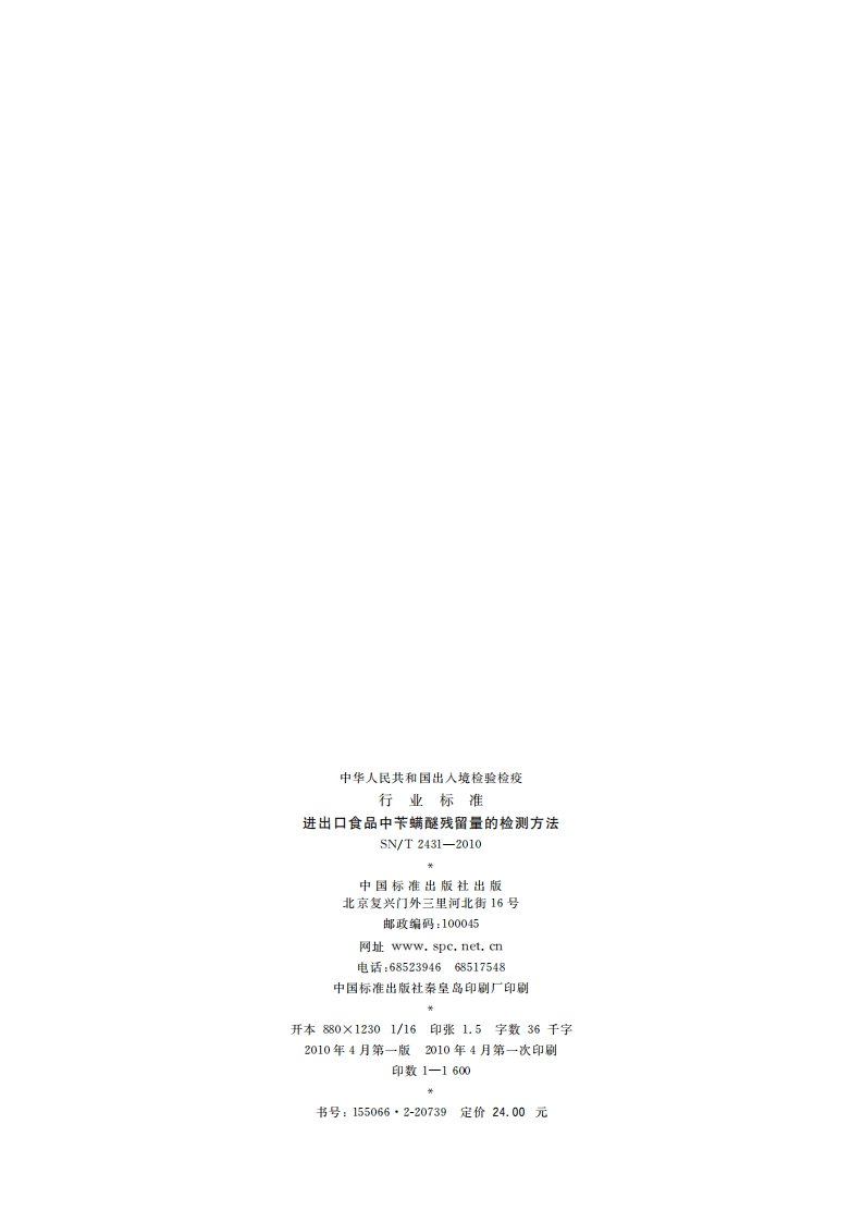 SN_T2431-2010进出口食品中苄螨醚残留量的检测标准方法348072@abc13天前发布关注私信1.40MB23页043SN_T2431-2010进出口食品中苄螨醚残留量的检测标准方法此内容为付费资源,请付费后查看¥13¥19黄金会员免费钻石会员免费立即购买您当前未登录!建议登陆后购买,可保存购买订单付费资源 第1页 / 共23页 第2页 / 共23页 第3页 / 共23页 第4页 / 共23页 第5页 / 共23页 试读已结束,还剩18页,您可下载完整版后进行离线阅读 THE END农学类标准规范餐饮美食 喜欢就支持一下吧收藏