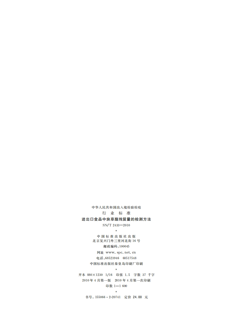 SN_T2433-2010进出口食品中炔草酯残留量的检测标准方法348072@abc12天前发布关注私信1.40MB23页036SN_T2433-2010进出口食品中炔草酯残留量的检测标准方法此内容为付费资源,请付费后查看¥13¥19黄金会员免费钻石会员免费立即购买您当前未登录!建议登陆后购买,可保存购买订单付费资源 第1页 / 共23页 第2页 / 共23页 第3页 / 共23页 第4页 / 共23页 第5页 / 共23页 试读已结束,还剩18页,您可下载完整版后进行离线阅读 THE END农学类标准规范餐饮美食 喜欢就支持一下吧收藏