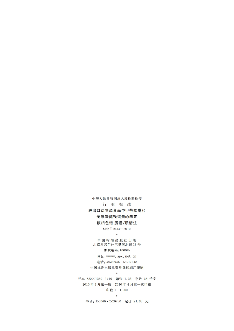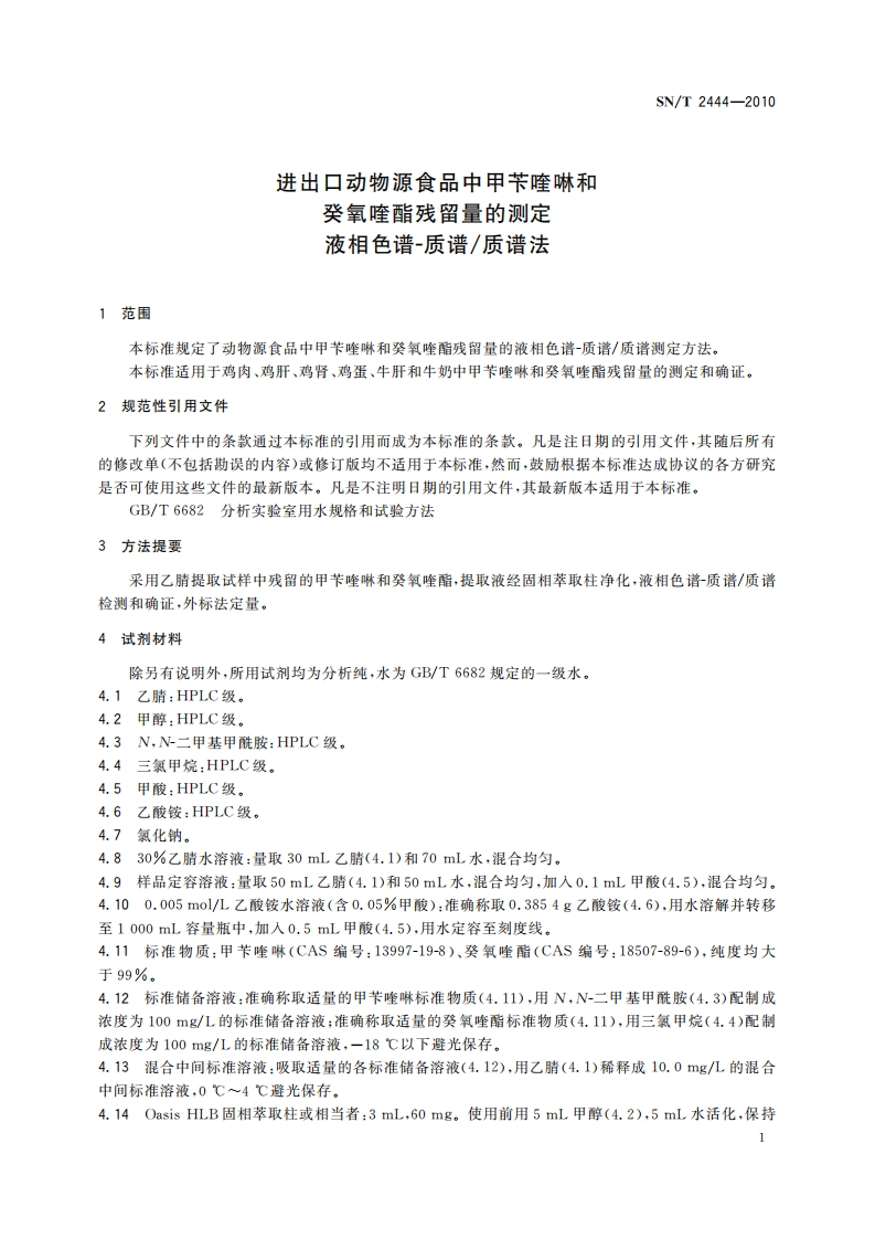 SN_T2444-2010进出口动物源食品中甲苄喹啉和癸氧喹酯残留量的标准测定液相色谱-质谱_质谱法348072@abc1个月前发布关注私信1.26MB19页040SN_T2444-2010进出口动物源食品中甲苄喹啉和癸氧喹酯残留量的标准测定液相色谱-质谱_质谱法此内容为付费资源,请付费后查看¥13¥19黄金会员免费钻石会员免费立即购买您当前未登录!建议登陆后购买,可保存购买订单付费资源 第1页 / 共19页 第2页 / 共19页 第3页 / 共19页 第4页 / 共19页 第5页 / 共19页 试读已结束,还剩14页,您可下载完整版后进行离线阅读 THE END播放器标准规范餐饮美食 喜欢就支持一下吧收藏