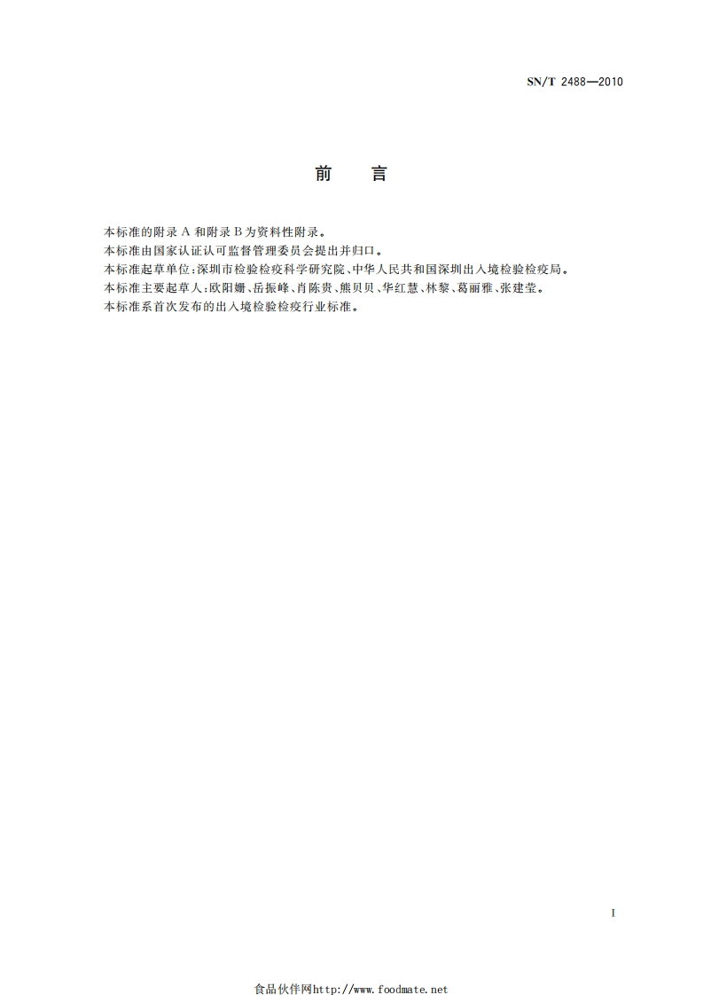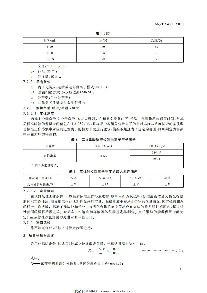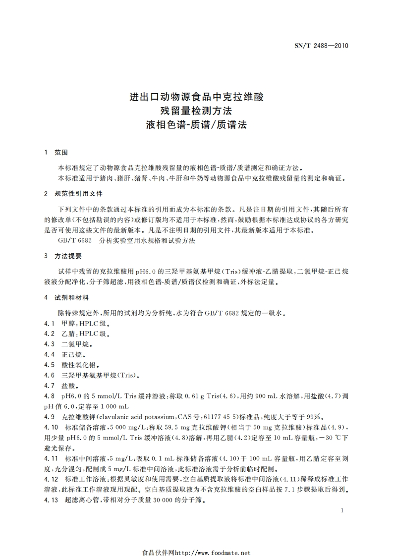 SN_T2488-2010进出口动物源食品中克拉维酸残留量检测标准方法液相色谱-质谱_质谱法348072@abc1个月前发布关注私信1.03MB18页031SN_T2488-2010进出口动物源食品中克拉维酸残留量检测标准方法液相色谱-质谱_质谱法此内容为付费资源,请付费后查看¥13¥19黄金会员免费钻石会员免费立即购买您当前未登录!建议登陆后购买,可保存购买订单付费资源 第1页 / 共18页 第2页 / 共18页 第3页 / 共18页 第4页 / 共18页 第5页 / 共18页 试读已结束,还剩13页,您可下载完整版后进行离线阅读 THE END播放器标准规范餐饮美食 喜欢就支持一下吧收藏