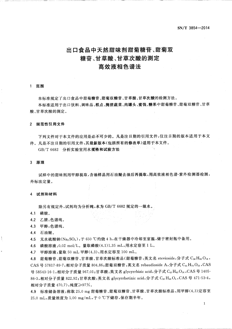 SN_T3854-2014出口食品中天然甜味剂甜菊糖苷、甜菊双糖苷、甘草酸、甘草次酸的标准测定高效液相色谱法348072@abc1个月前发布关注私信0.40MB19页020SN_T3854-2014出口食品中天然甜味剂甜菊糖苷、甜菊双糖苷、甘草酸、甘草次酸的标准测定高效液相色谱法此内容为付费资源,请付费后查看¥13¥19黄金会员免费钻石会员免费立即购买您当前未登录!建议登陆后购买,可保存购买订单付费资源 第1页 / 共19页 第2页 / 共19页 第3页 / 共19页 第4页 / 共19页 第5页 / 共19页 试读已结束,还剩14页,您可下载完整版后进行离线阅读 THE END农学类标准规范餐饮美食 喜欢就支持一下吧收藏