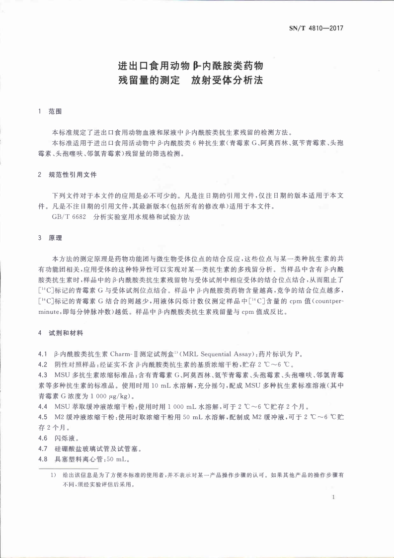 SN_T4810-2017进出口食用动物β-内酰胺类药物残留量的标准测定放射受体分析法348072@abc1个月前发布关注私信0.46MB6页026SN_T4810-2017进出口食用动物β-内酰胺类药物残留量的标准测定放射受体分析法此内容为付费资源,请付费后查看¥13¥19黄金会员免费钻石会员免费立即购买您当前未登录!建议登陆后购买,可保存购买订单付费资源 第1页 / 共6页 第2页 / 共6页 第3页 / 共6页 第4页 / 共6页 第5页 / 共6页 试读已结束,还剩1页,您可下载完整版后进行离线阅读 THE END农学类标准规范餐饮美食 喜欢就支持一下吧收藏