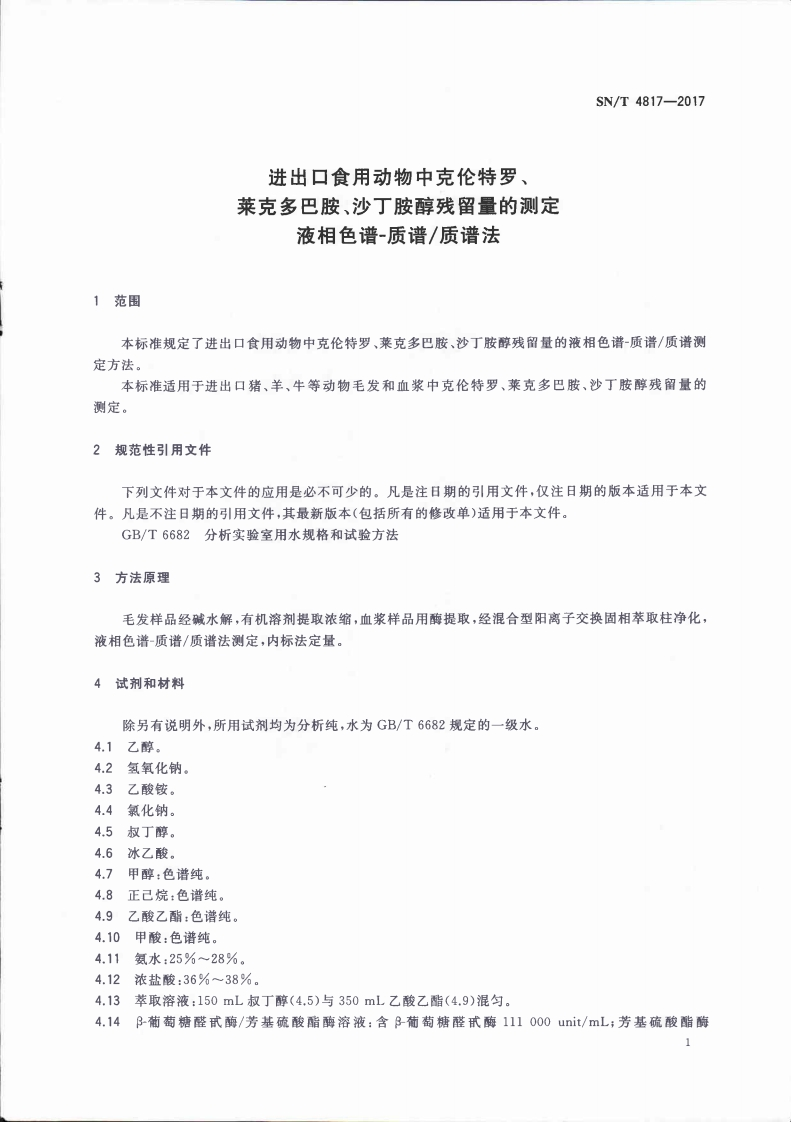 SN_T4817-2017进出口食用动物中克伦特罗、莱克多巴胺、沙丁胺醇残留量的标准测定液相色谱-质谱_质谱法348072@abc1个月前发布关注私信0.99MB12页023SN_T4817-2017进出口食用动物中克伦特罗、莱克多巴胺、沙丁胺醇残留量的标准测定液相色谱-质谱_质谱法此内容为付费资源,请付费后查看¥13¥19黄金会员免费钻石会员免费立即购买您当前未登录!建议登陆后购买,可保存购买订单付费资源 第1页 / 共12页 第2页 / 共12页 第3页 / 共12页 第4页 / 共12页 第5页 / 共12页 试读已结束,还剩7页,您可下载完整版后进行离线阅读 THE END播放器标准规范餐饮美食 喜欢就支持一下吧收藏