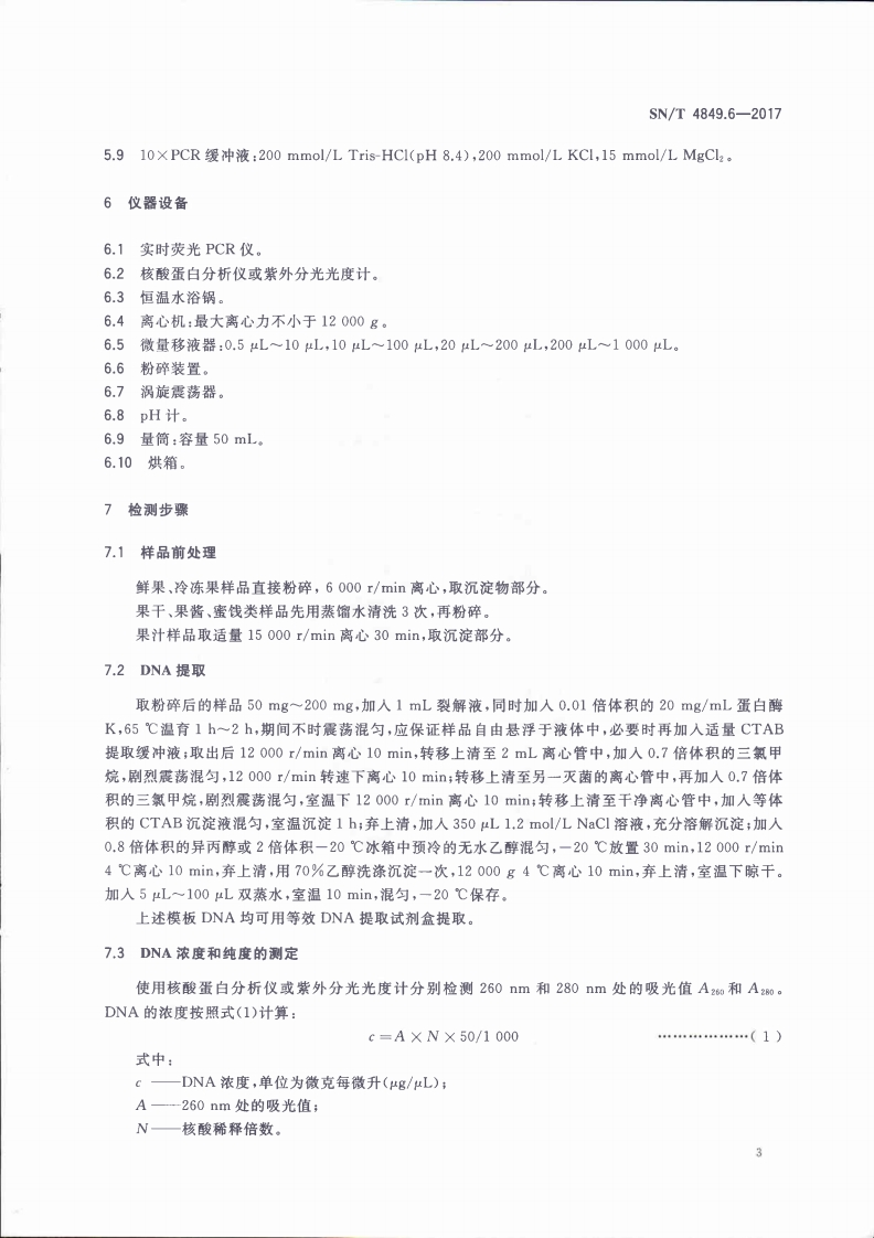 SN_T4849.6-2017出口食品及饮料中常见小浆果成分的检测标准方法实时荧光PCR法第6部分:猕猴桃348072@abc1个月前发布关注私信0.66MB9页045SN_T4849.6-2017出口食品及饮料中常见小浆果成分的检测标准方法实时荧光PCR法第6部分:猕猴桃此内容为付费资源,请付费后查看¥13¥19黄金会员免费钻石会员免费立即购买您当前未登录!建议登陆后购买,可保存购买订单付费资源 第1页 / 共9页 第2页 / 共9页 第3页 / 共9页 第4页 / 共9页 第5页 / 共9页 试读已结束,还剩4页,您可下载完整版后进行离线阅读 THE END播放器标准规范餐饮美食 喜欢就支持一下吧收藏